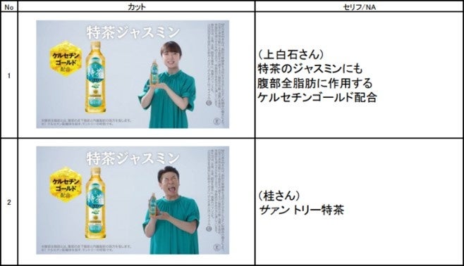 今年4月に大刷新した「特茶」に続き、「特茶 ほうじ茶」「同 ジャスミン」についても、新たに許可を受けた「ケルセチン配糖体」の“日常の身体活動による脂肪を代謝する力(脂肪の分解・消費)を高める”というメカニズムを許可表示に掲げ、「ケルセチン配糖体」をモチーフとした新ボトルへと刷新します。動画本編では、上白石萌音さんと桂三度さんが3種類の「特茶」のパッケージにちなんだ緑(金の特茶)、茶(特茶ほうじ茶)、青(特茶ジャスミン)の衣装に身を包み登場します。昨年10月から訴求している、「特茶」ならではの関与成分「ケルセチンゴールド(※)」が3種類すべてに配合されていることを桂三度さんのおなじみのネタに乗せて伝えます。