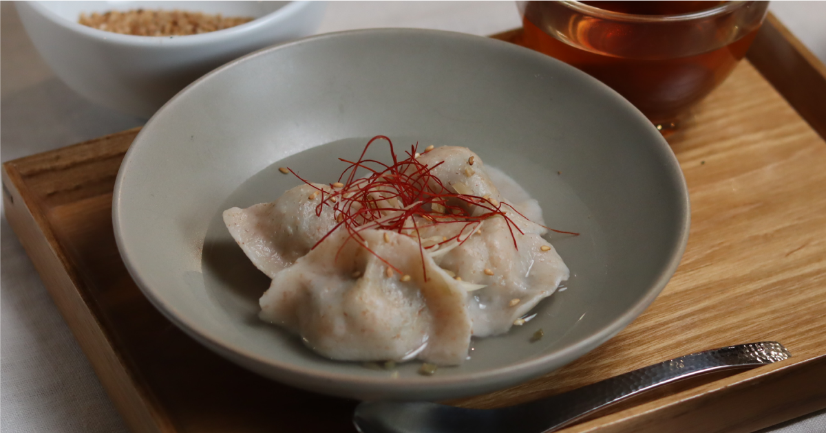 「おはぎょうざ」のレシピを考案しているのは、季節の野菜を使った水餃子が人気の名店「餃子のかわしも」。朝食のシーンを想定してオリジナルで開発しています。においが残る五葷(にんにく、ネギ、ニラ)は不使用。肉は鶏肉を使用し、ほうれん草、キクラゲといった野菜がたっぷり含まれた餡を、低GI食品である全粒粉の皮で手包みして仕上げています。長期冷凍保存が可能で、調理の際は凍ったままお湯で数分茹でるだけ。時間の限られた朝でも、簡単に健康的な食事を楽しむことができます。