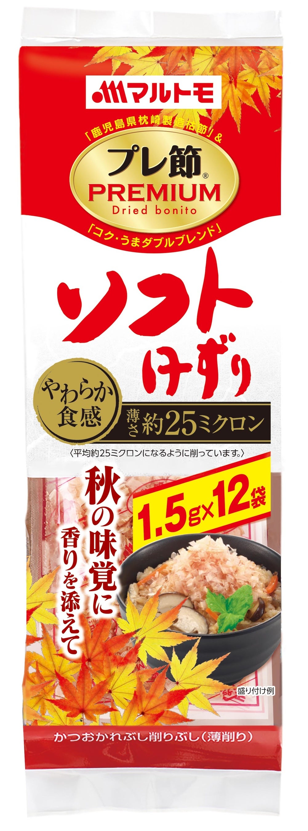 マルトモ株式会社(社長:今井均 本社:愛媛県伊予市)は、収穫の秋に売り場を華やかに演出し、食卓に旬のおいしさを届けるべく、秋の紅葉をパッケージにデザインした「プレ節Ⓡ 25 ミクロンソフトけずり 1.5g × 12 袋」を全国で発売します。