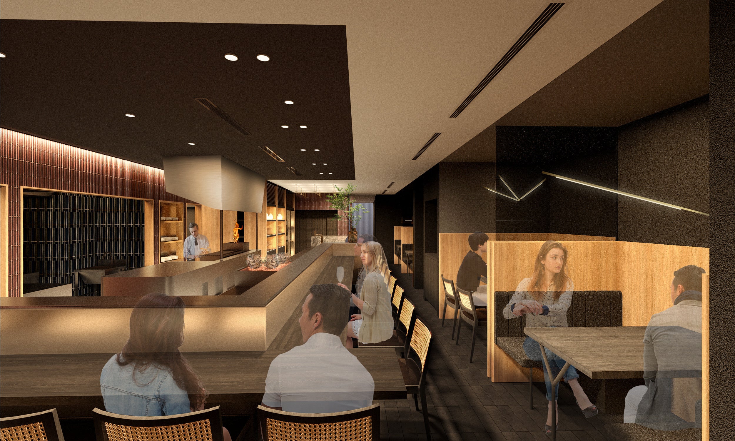 『料理屋』として、走り・旬・名残りを明確に見極めた季節の食材を使い分け、和モダンな店内のカウンター席では、牡蠣選定師による産直の”生牡蠣”や燃え上がる炎の”炭火藁焼き”のライブ感が間近でお愉しみいただけます。常時”利き酒師”が在中しており、日本酒が楽しく飲める本格和食をコンセプトに、和食の確かな技術が合わさった”肉料理逸品”と免疫力アップや健康増進の”生牡蠣”を新たにラインナップしております。