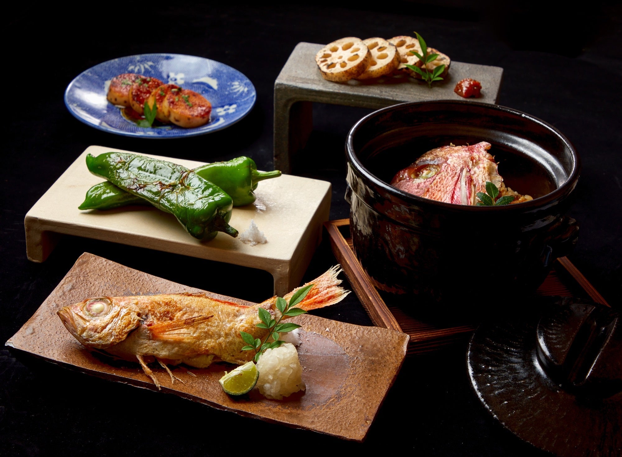 経験に裏打ちされた目利きの技術によって、素材に最適な焼き時間、調理法でその時に最も美味しい料理を提供。技術の一つ藁焼きは800℃の高温で素材の表面を一気に炙り、旨みをぎゅっと凝縮させた焼き技法で炙り造りに。また、産地にこだわり福岡からの直送でしか食べる事の出来ないの真サバは金胡麻香る胡麻鯖で。旬は日々変わるもの その時の『最良』を仕入れ、素材の味わいを引き立てるお品書は日々50種。