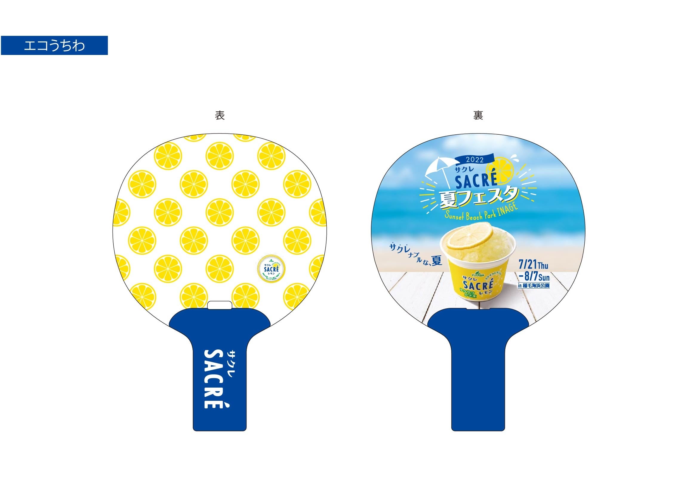 食べ終わったサクレのパッケージはかわいいデザインのエコ素材で作られた専用の回収ボックスでしっかり分別・回収を行います。回収のお礼として、地球環境に配慮し、脱プラスチックの全て紙で作られたオリジナルデザインの「エコうちわ」をプレゼントいたします。