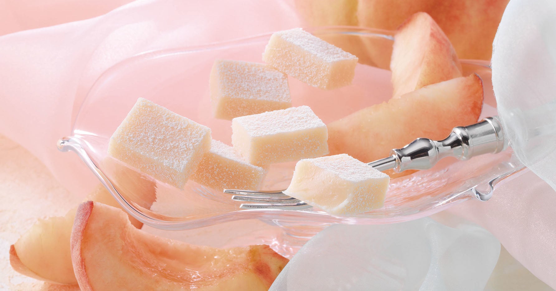 風味豊かな白桃の味わいが口いっぱいに広がる生チョコレート。国産白桃のパウダーとピューレをホワイトチョコレートに合わせ、風味付けに桃のリキュールをブレンドしました。白桃の味わいがホワイトチョコレートのまろやかな甘さととけ合います。