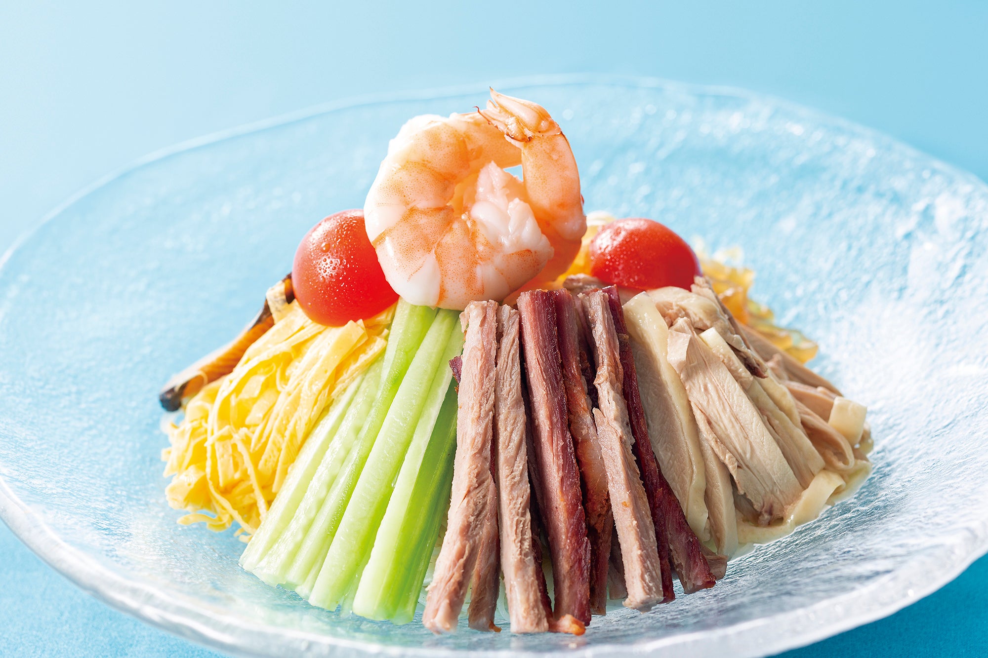 開業当初から続く冷やしそばは、海老やくらげ、自家製チャーシューなど9種の華やかな具材をトッピングし、毎年お客様よりご好評いただいている夏の逸品です。