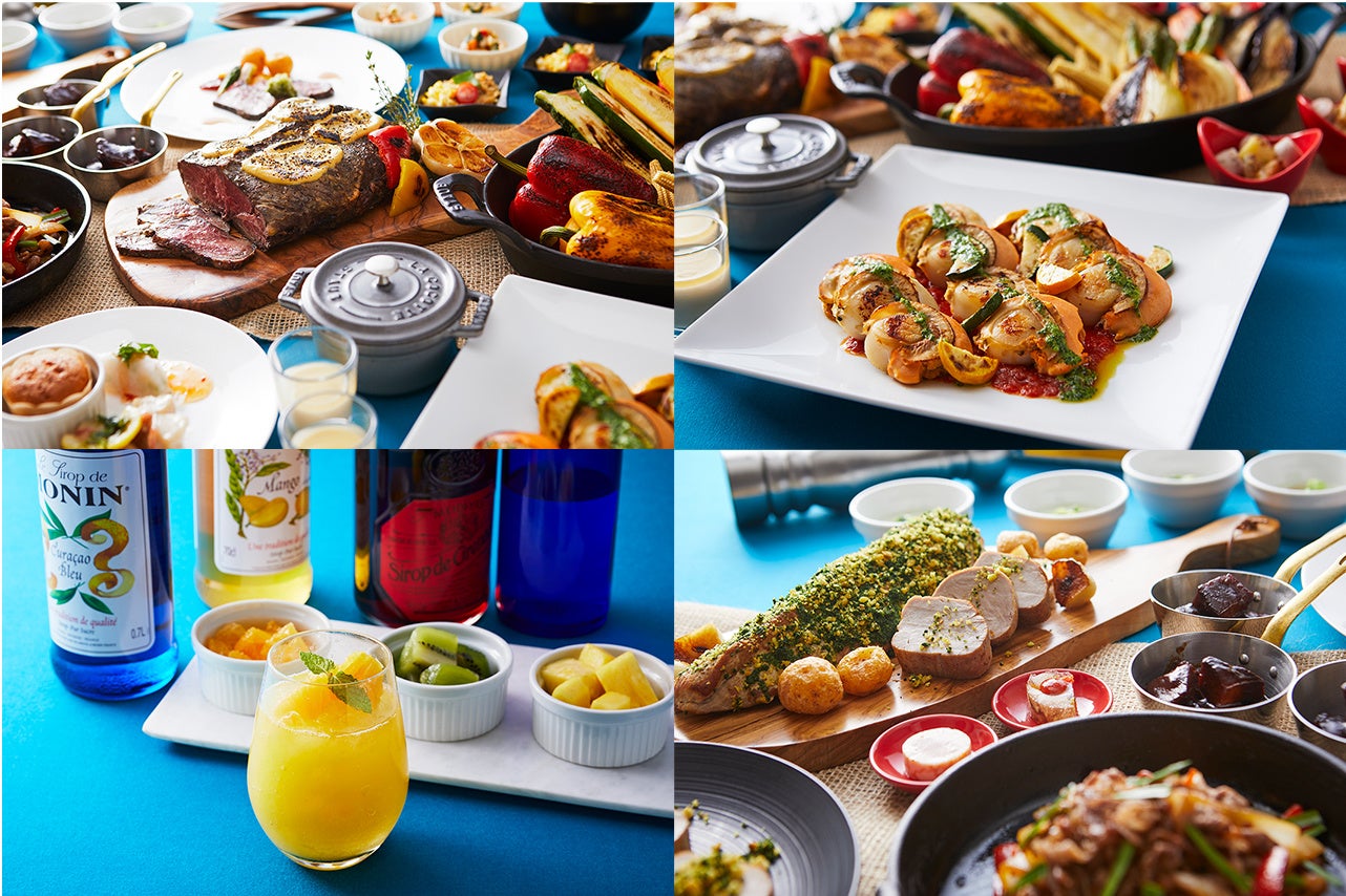 低温でしっとり柔らかく焼き上げた豚フィレ肉の香草焼きや、旨味を閉じ込めた牛肉のペッパーステーキ、ピリ辛な味わいのプルコギなど、暑い夏を乗り切るのにぴったりな肉料理のほか、前菜からスイーツまで多彩な料理を約70種ご用意いたします。また、期間限定・タイムサービスにて、お好みのトッピングでつくれる自分だけの「オリジナルカクテル」もお楽しみいただけます。目の前で仕上げるライブキッチンからの香りや音とともに心ゆくまでご堪能ください。