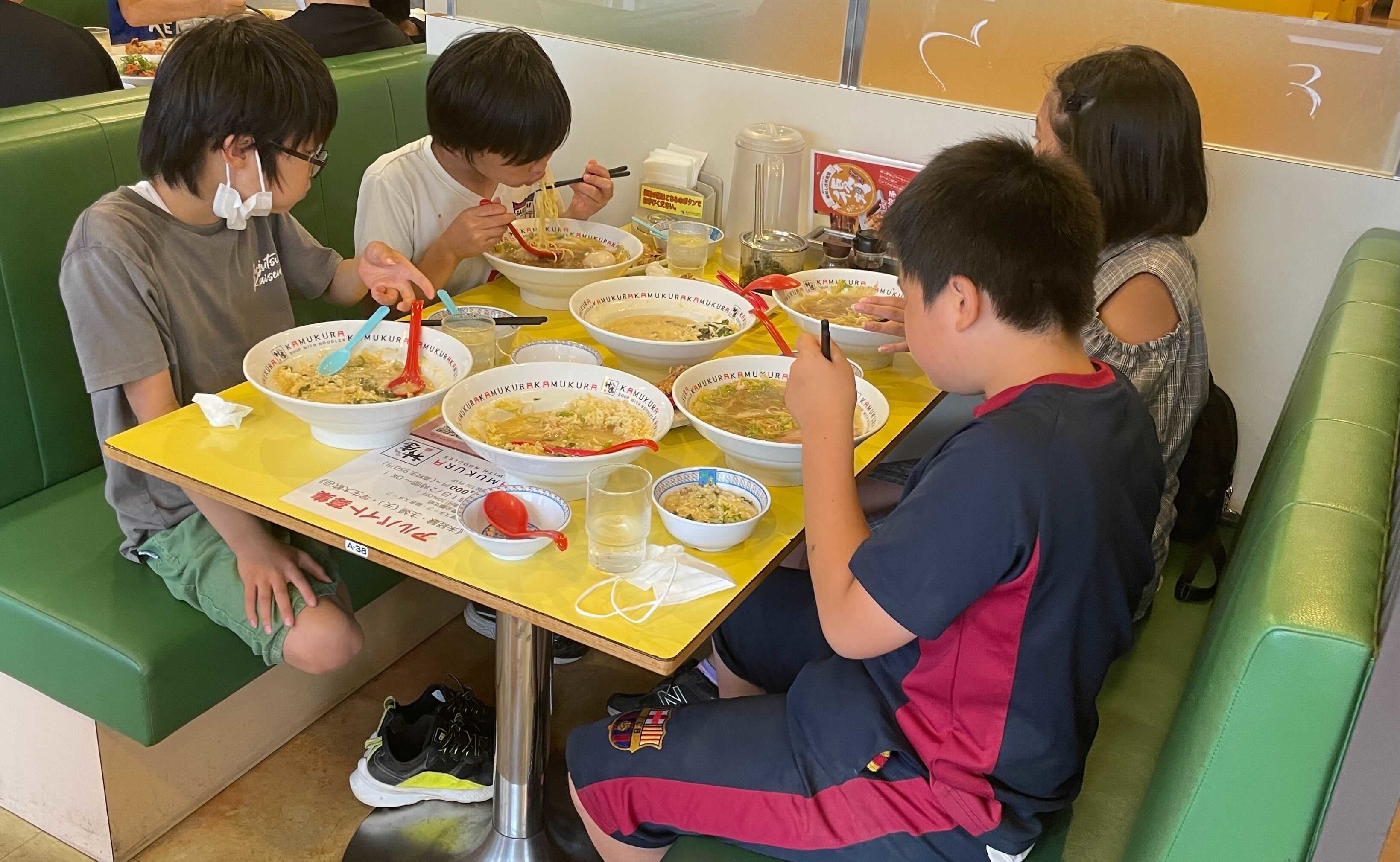 「ラーメンも餃子もおいしい!」「ラーメン大好き!」など大満足の様子でした。それぞれが好きなメニューを注文し、中には大人サイズのラーメンを頼むお子さんも。1杯目を食べ終えるころには「おかわり!」の声が聞こえ始め、みんなお腹いっぱい食べてくれたようです。最後には「ごちそうさまでした」と大きな声であいさつをしてくれました。