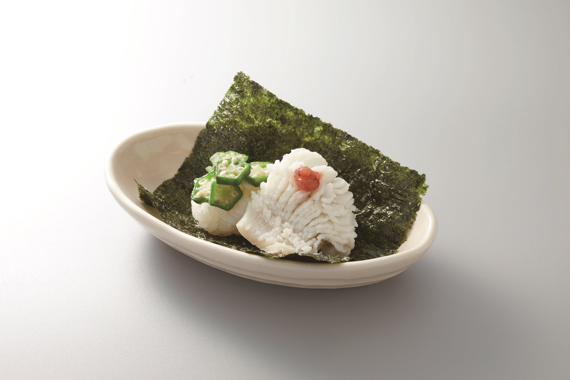 そして、夏ならではの鱧(はも)の逸品は、国産の活〆はもを使用した「鱧の湯引き手巻き寿司」や「鱧天そば/うどん」「鱧と冬瓜の炊合せ」などをご用意。