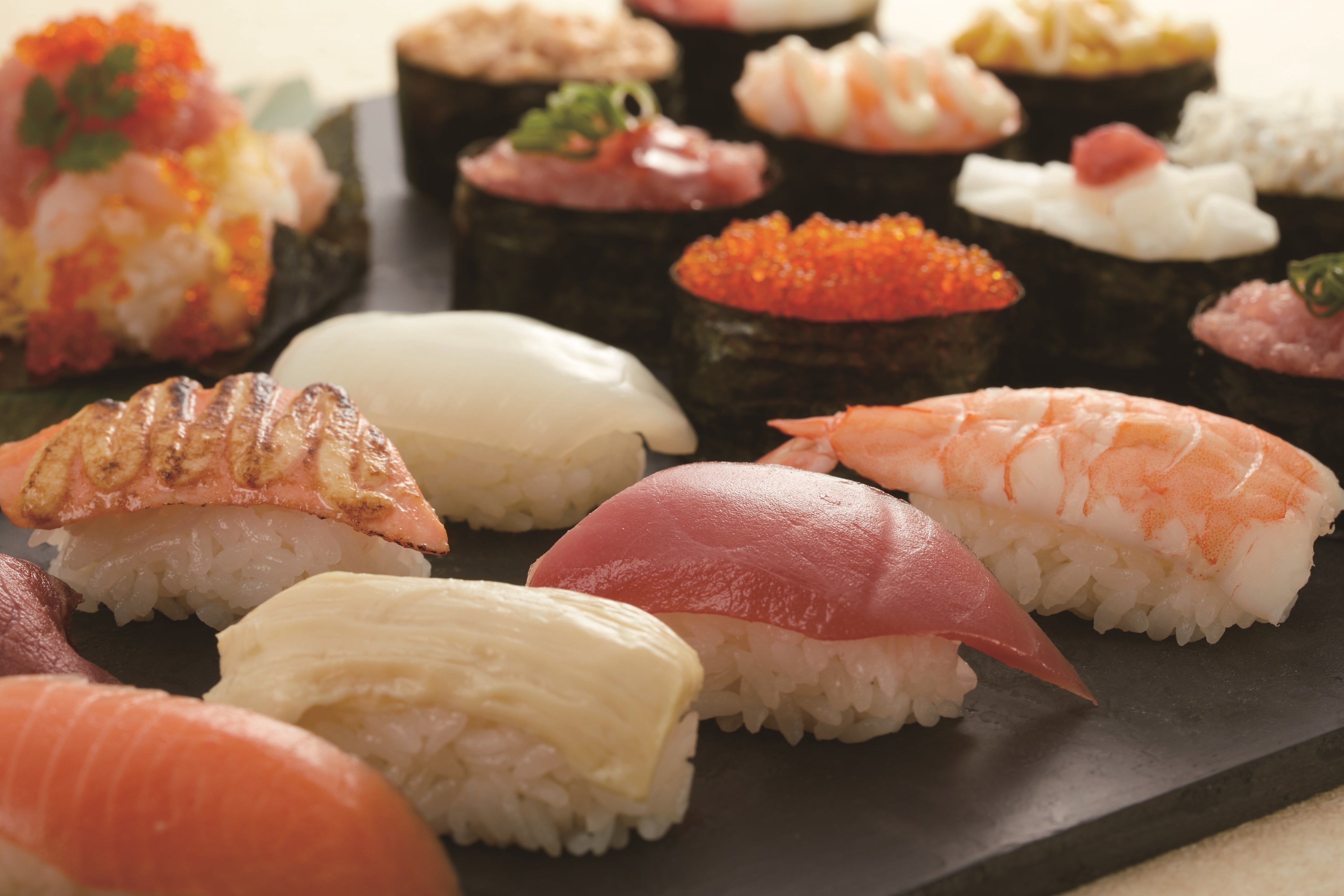 お寿司や牛ロースステーキ、海老天ぷらなどオーダー毎に調理する出来立ての料理など鍋具材と合せて約100種類が食べ放題です!!