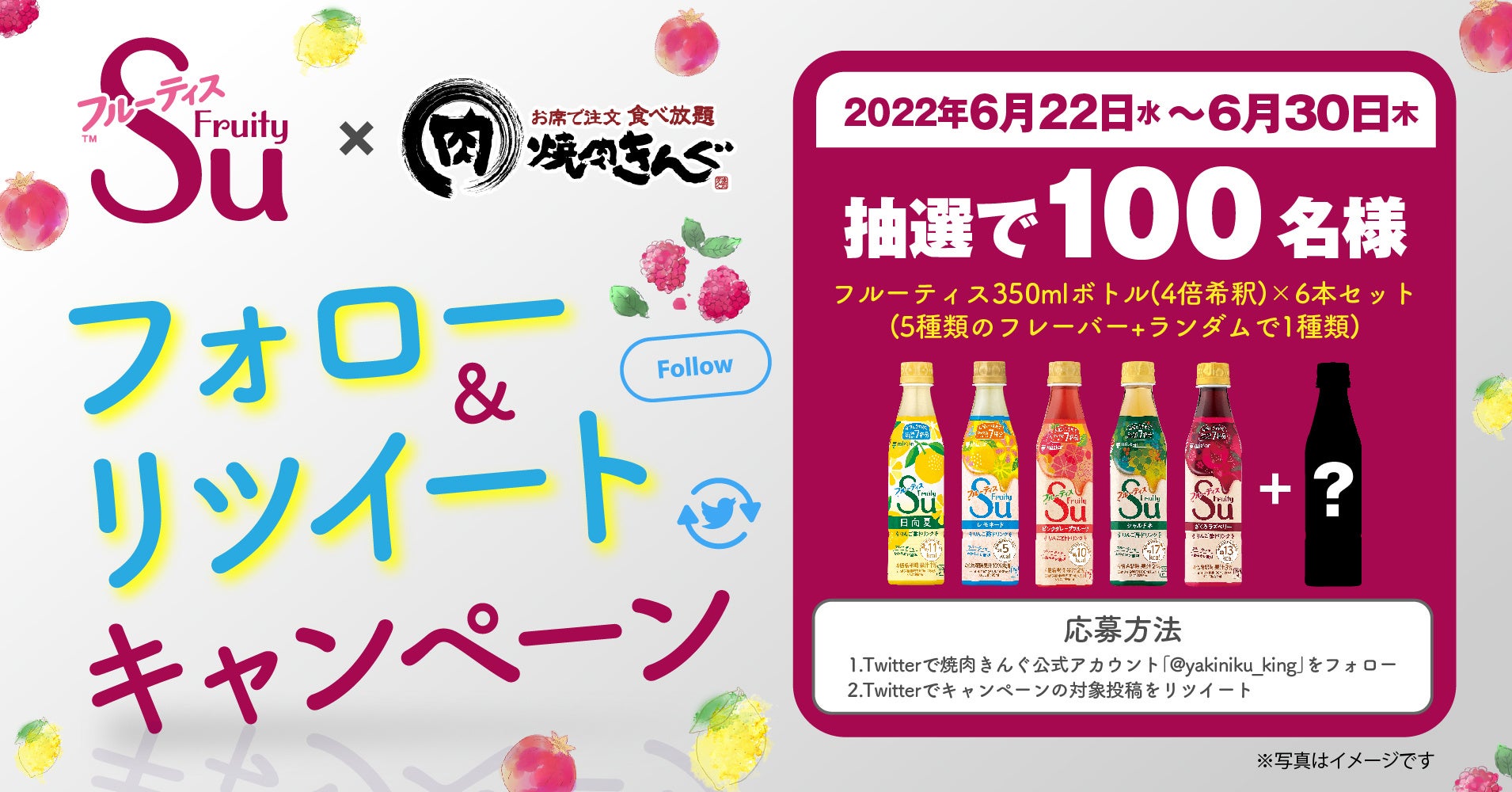 これを記念して「フルーティス™ 350ml(4倍希釈)×6本セット」が当たるプレゼントキャンペーンを開催いたします。