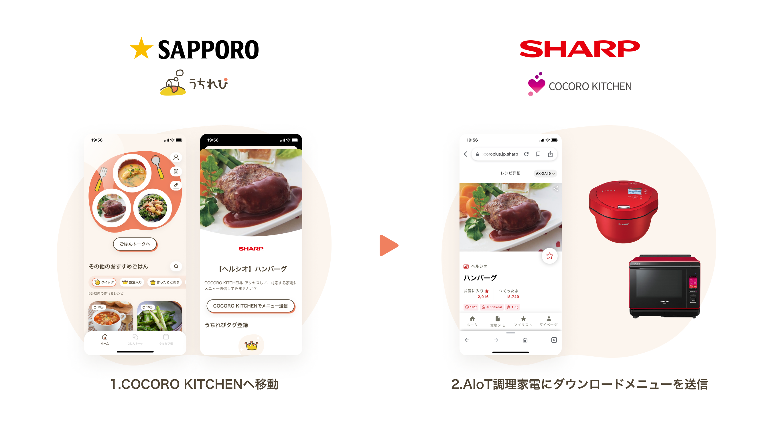 ①シャープ(株)の調理家電と「うちれぴ」の連携