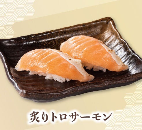 開始後、大変ご好評いただいている事から、夏フェアとして寿司おつまみともに新商品を導入し、寿司が全10種類、おつまみは全9種類を取り揃えました。今回の夏フェア開催にあたっては、寿司には香ばしく脂が乗った「炙りトロサーモン」、おつまみには夏を感じる「棒棒鶏」や、暑い日にもお箸が進む「ガーリックバターコーン」が新しく加わり全19品目になりました。