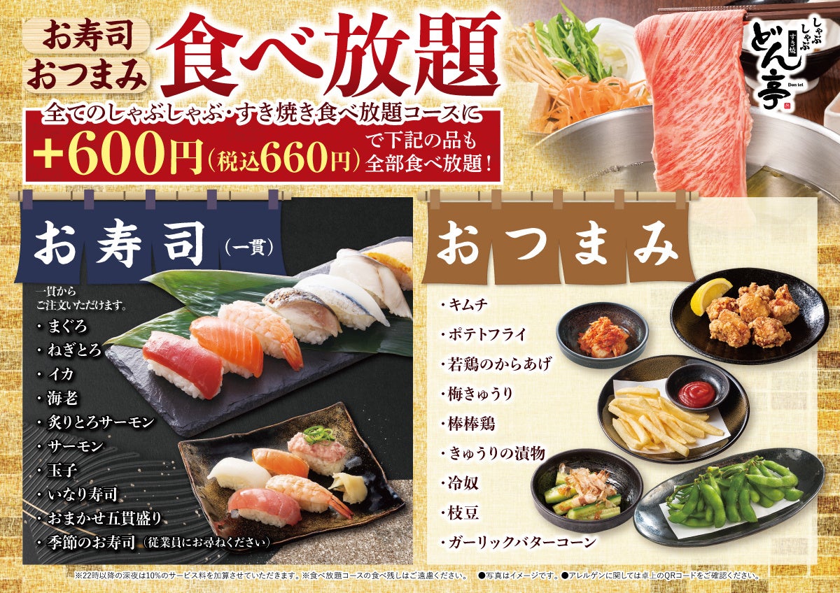 どん亭では2022年6月から、しゃぶしゃぶすきやき食べ放題コースにプラス600円(税込660)円で、