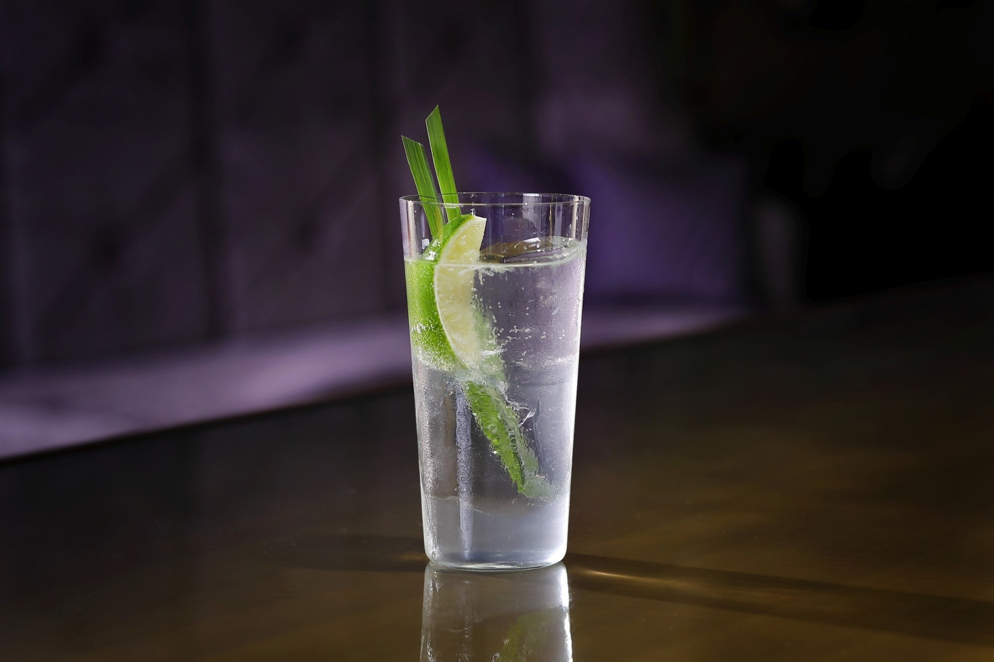 香りのベースにレモングラスを使っている福岡発のクラフトジン“Jin40”と自家製レモングラスシロップ、ソーダでジンリッキーに仕上げました。