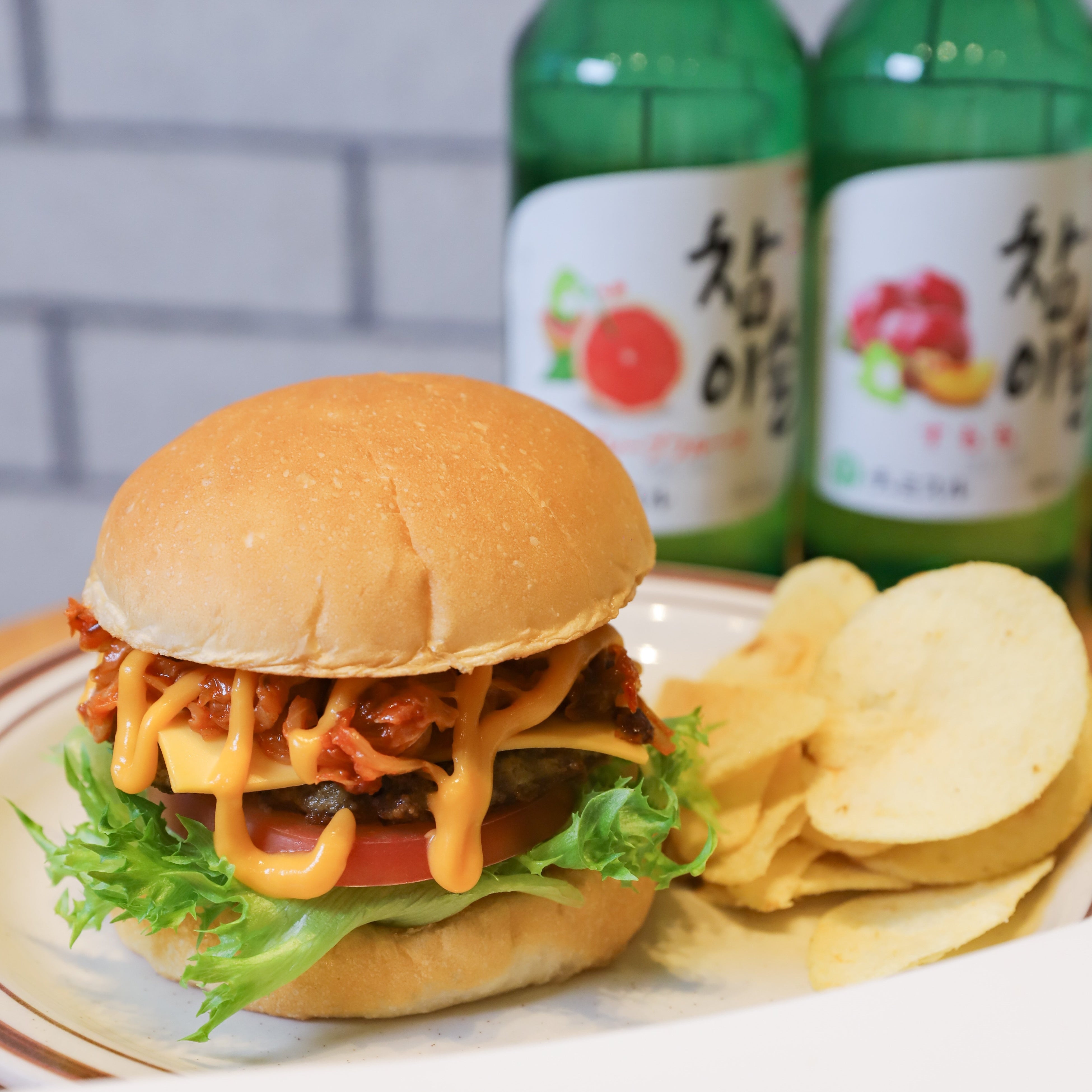 第一弾では、モクシー大阪本町のシグネチャーメニューとなるキムチバーガーが登場。あわせて日本でも定番のお酒となりつつある韓国焼酎、マッコリなどのアルコール類と、ノンアルコールドリンク類も登場します。キムチバーガーは自家製のパテを使い、お肉のうま味とキムチの相性が絶妙なスペシャルな一品に仕上がっています。