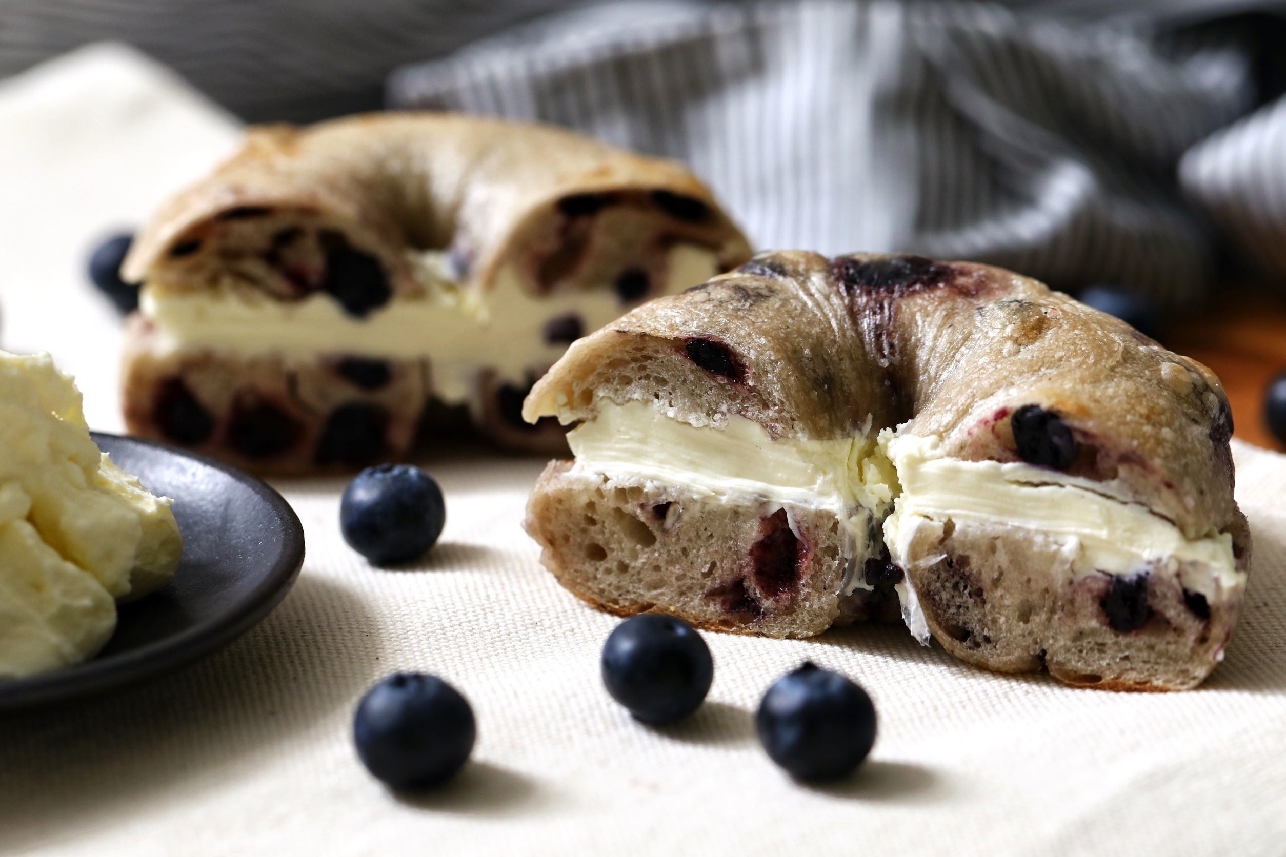 「ベーグル ブルーベリー」によりコクが広がる奥深い味わいになるよう、マスカルポーネチーズを合わせた特製クリームチーズをサンドいたしました。