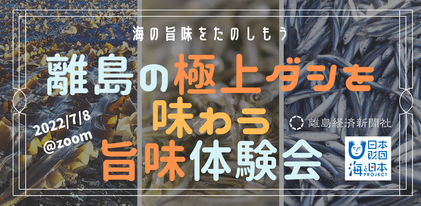 2022年7月8日(金)に、「離島の魚食文化を広めるプロジェクト2022」の第一弾として、島のダシ(出汁)を味わう体験型オンラインイベント「海の旨味をたのしもう〜離島の極上ダシを味わう旨味体験会〜」を開催します。