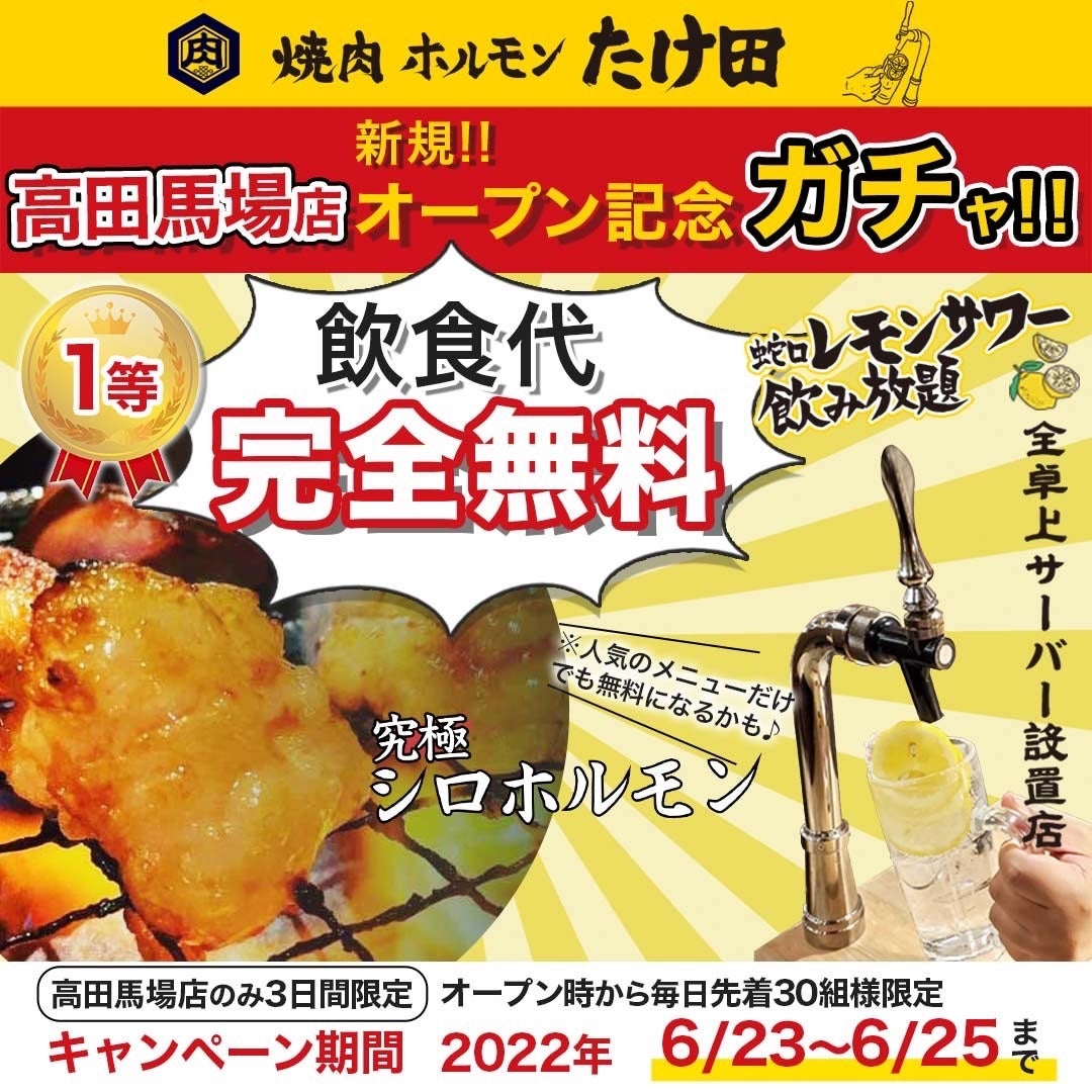 この度、『焼肉ホルモンたけ田』は、その飲食激戦区の一つである高田馬場への出店を決意いたしました。