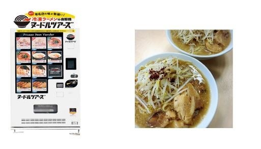「ヌードルツアーズ」は、全国の有名店のラーメンを味わえる冷凍ラーメンの自動販売機です。非対面式で24時間いつでも気軽に購入でき、調理方法も簡単です。2021年3月に提供を開始し、現在の提携ラーメン店は21店舗、全国111箇所に設置しており、販売食数は25万食を突破しました。