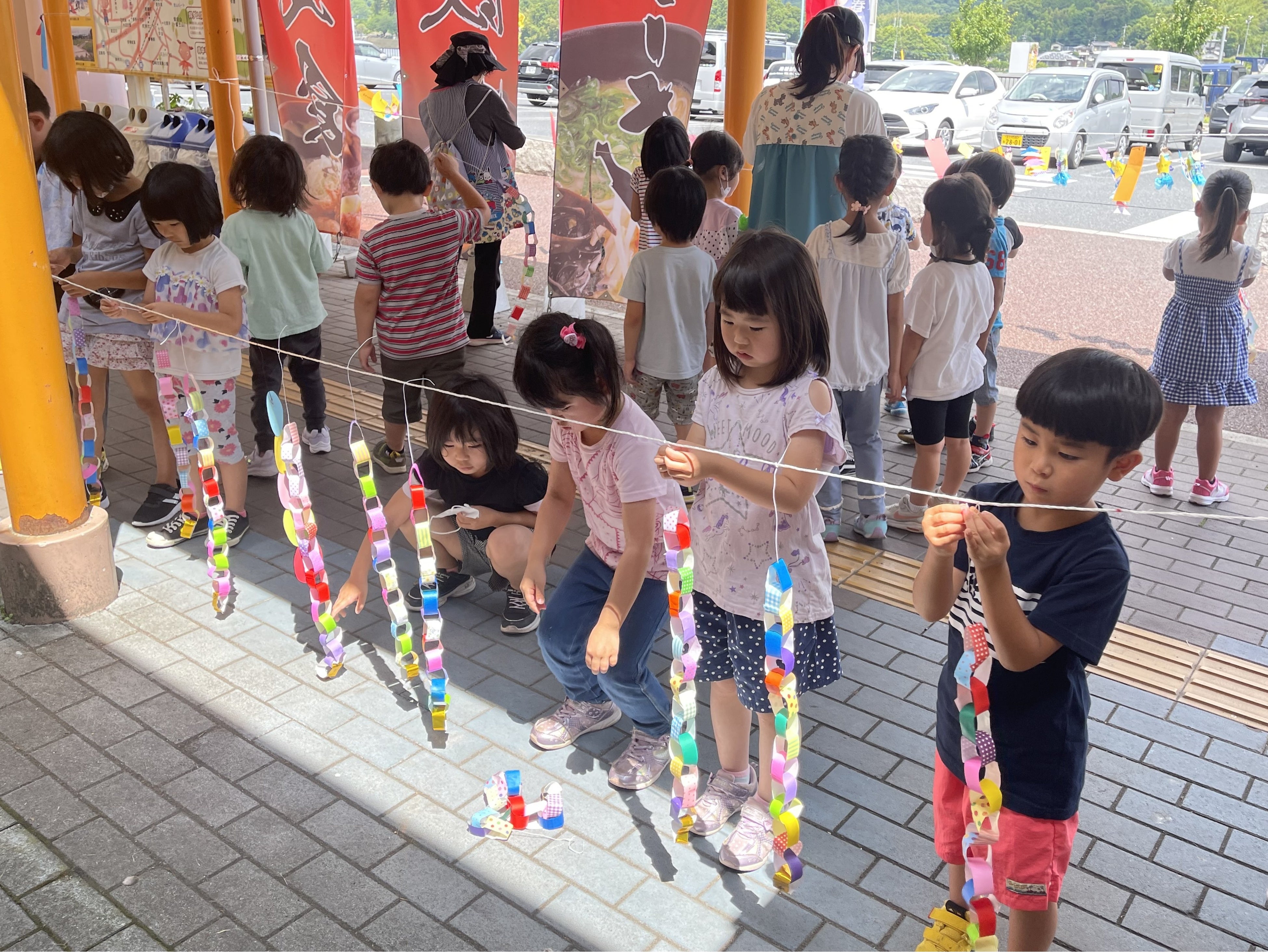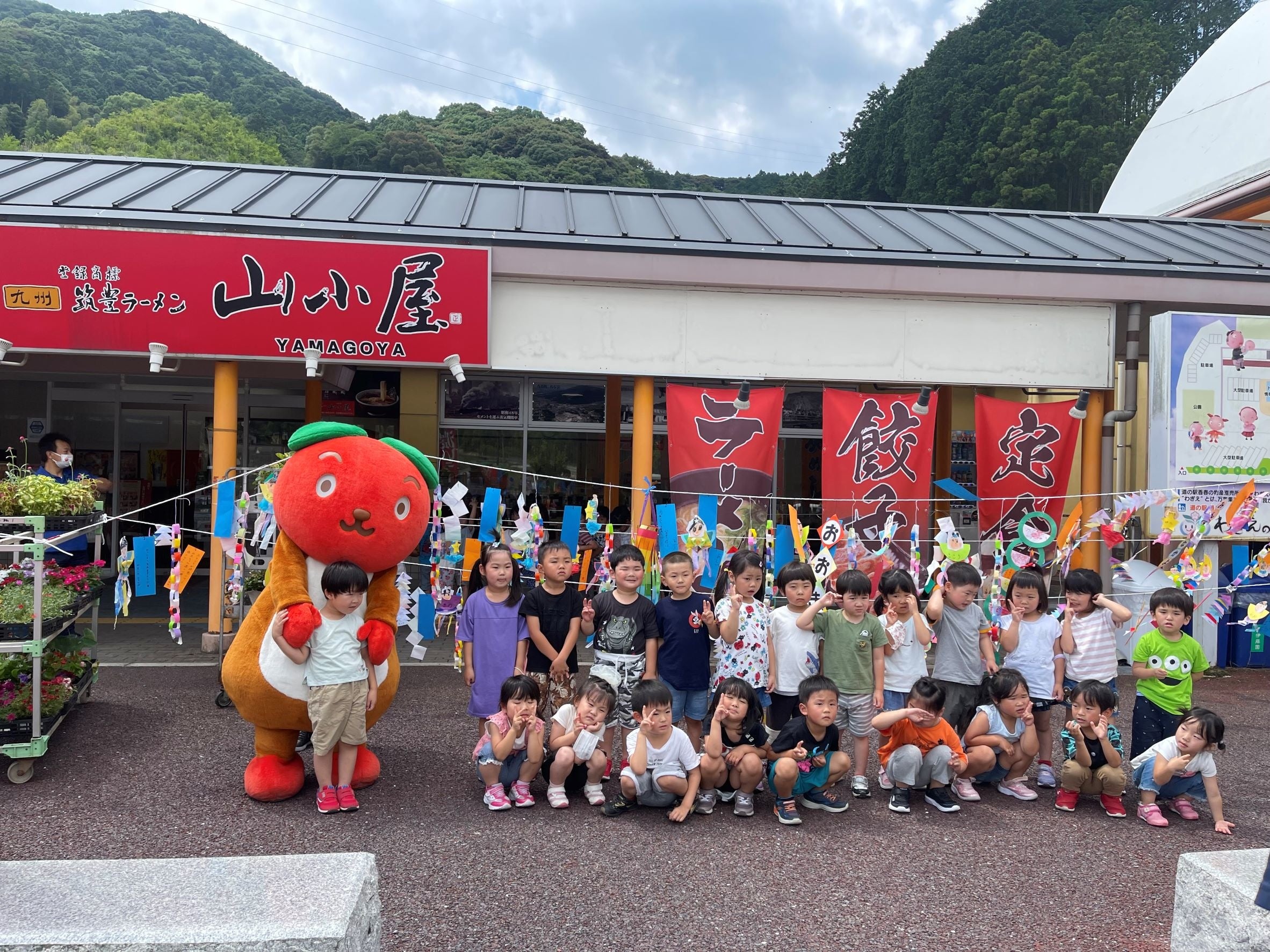 同イベントは、勾金保育所からの要望により実現したもので、同店舗に併設されている「道の駅 香春”わぎえの里”」とも協力して実施されたイベントのため、園児による七夕飾りは当店および道の駅に設置されています。