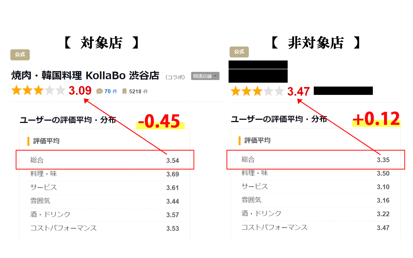 当社は、このような食べログのチェーン店ディスカウントは、1)食べログを信頼して使っている月間1億人を超える食べログユーザーの飲食店の選択を誤らせており、2)月間330円を支払っている45万人の個人ユーザーは実際ユーザーが付けた公平・公正なランキングではないランキング・サービスにお金を支払っていることになり、3)当社を含む多数のチェーン店は不当に点数が下げられて客数・売上減少の被害を被ったと考えております。