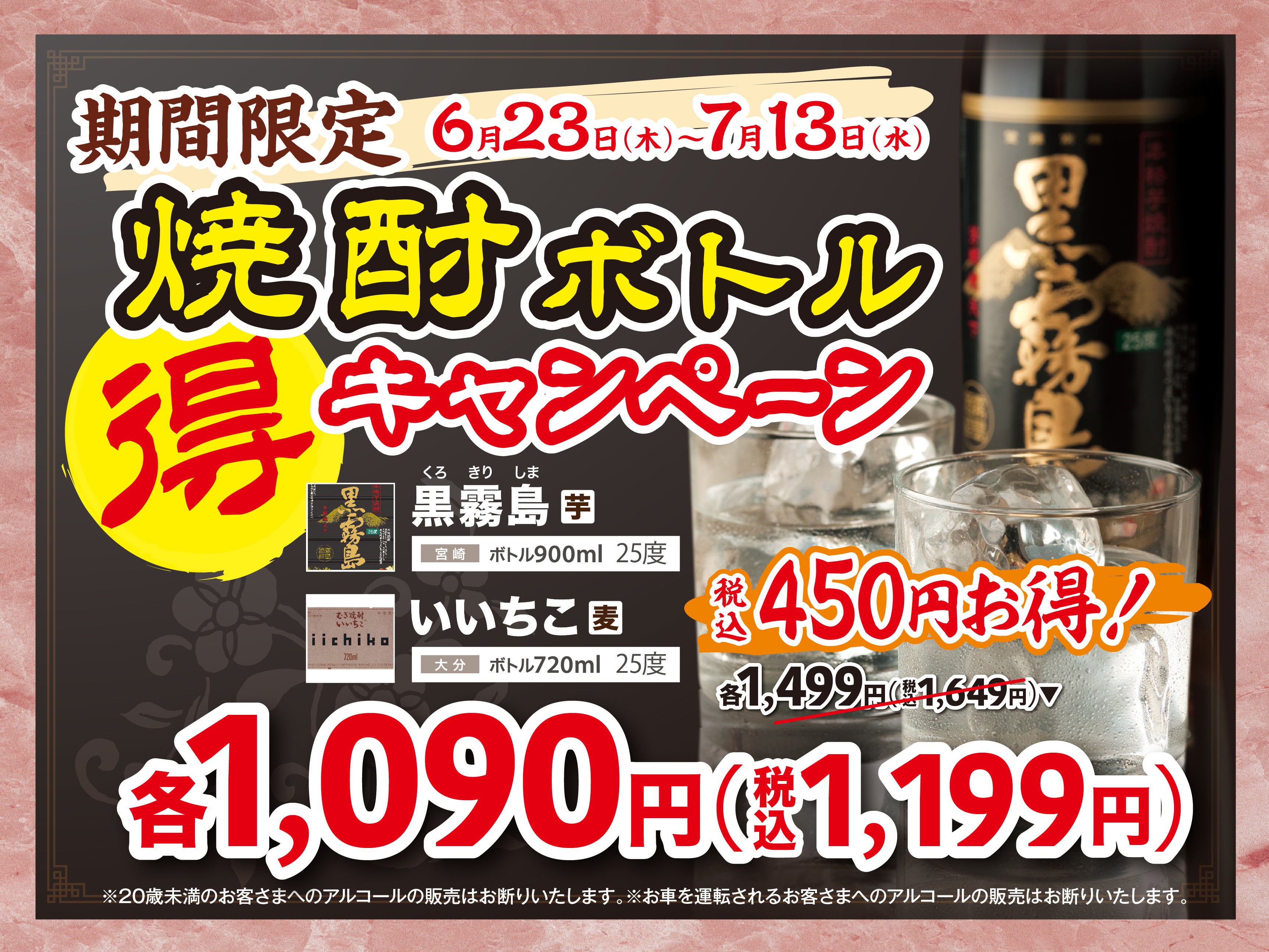 ※お車を運転のお客さまと20歳未満の方へのアルコールの販売はお断りいたします