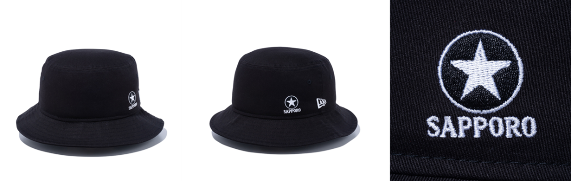 NEW ERA®の定番である「9FIFTY™」には、黒ラベルを象徴するシンボルマークを大きく入れ、白と黒の2バージョンを製作しました。また古くて新しいデザインが特長の「9TWENTY™」には、正面ではなく左斜めに小さく黒ラベルのロゴを入れています。加えて、企業ブランドとのコラボレーションでは珍しいバケットハットの「Bucket-01」も製作しました。