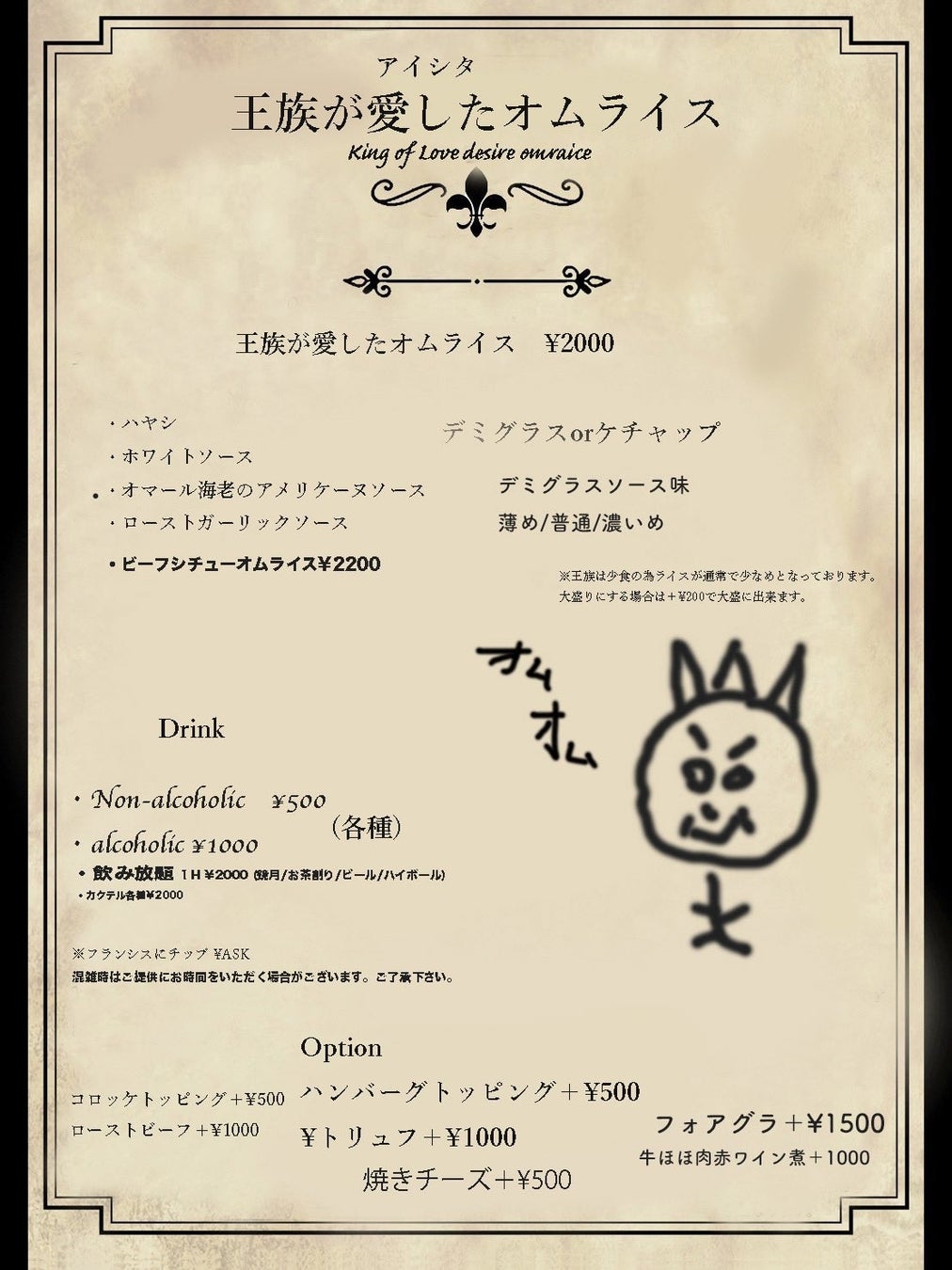 代々フランシス家で愛されていた秘密のレシピで作られる「王族が愛したオムライス」が楽しめるオムライス専門店