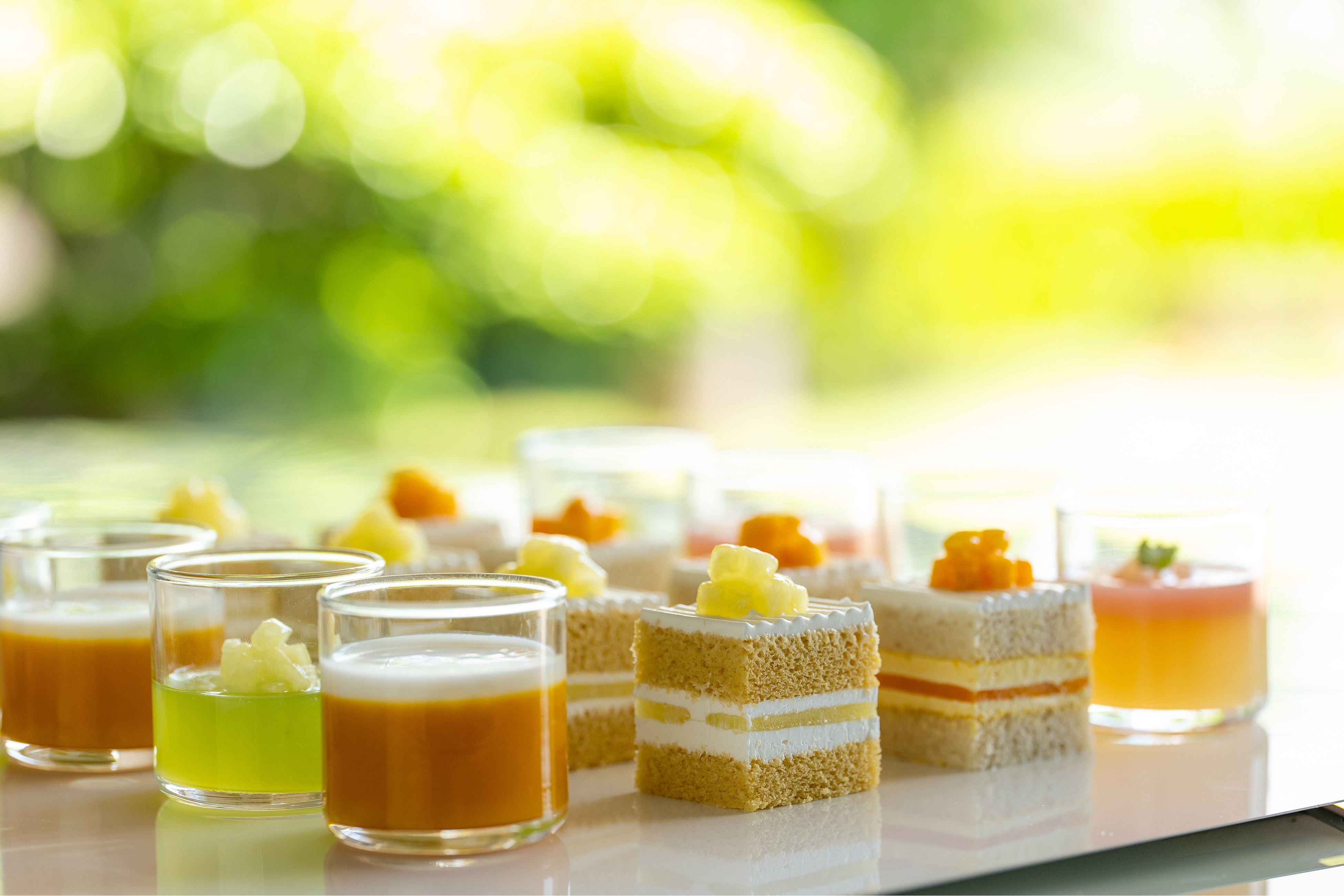 そこでホテルニューオータニでは、夏に旬を迎える代表的なフルーツ、ビタミンが豊富に含まれ、美容効果や免疫力向上が期待できる“マンゴー”、鉄分・マグネシウムも含まれており、冷え性や夏バテにも効果的とされている“ピーチ”、さらに、果物の中でも夏に不足しがちなカリウムが豊富な“メロン”をふんだんに使用したスイーツビュッフェを開催いたします。例年以上に暑くなることが予想される今夏、緑に囲まれた日本庭園を眺めるガーデンラウンジで、美味しく健康に快適な夏を過ごしてみてはいかがでしょうか。