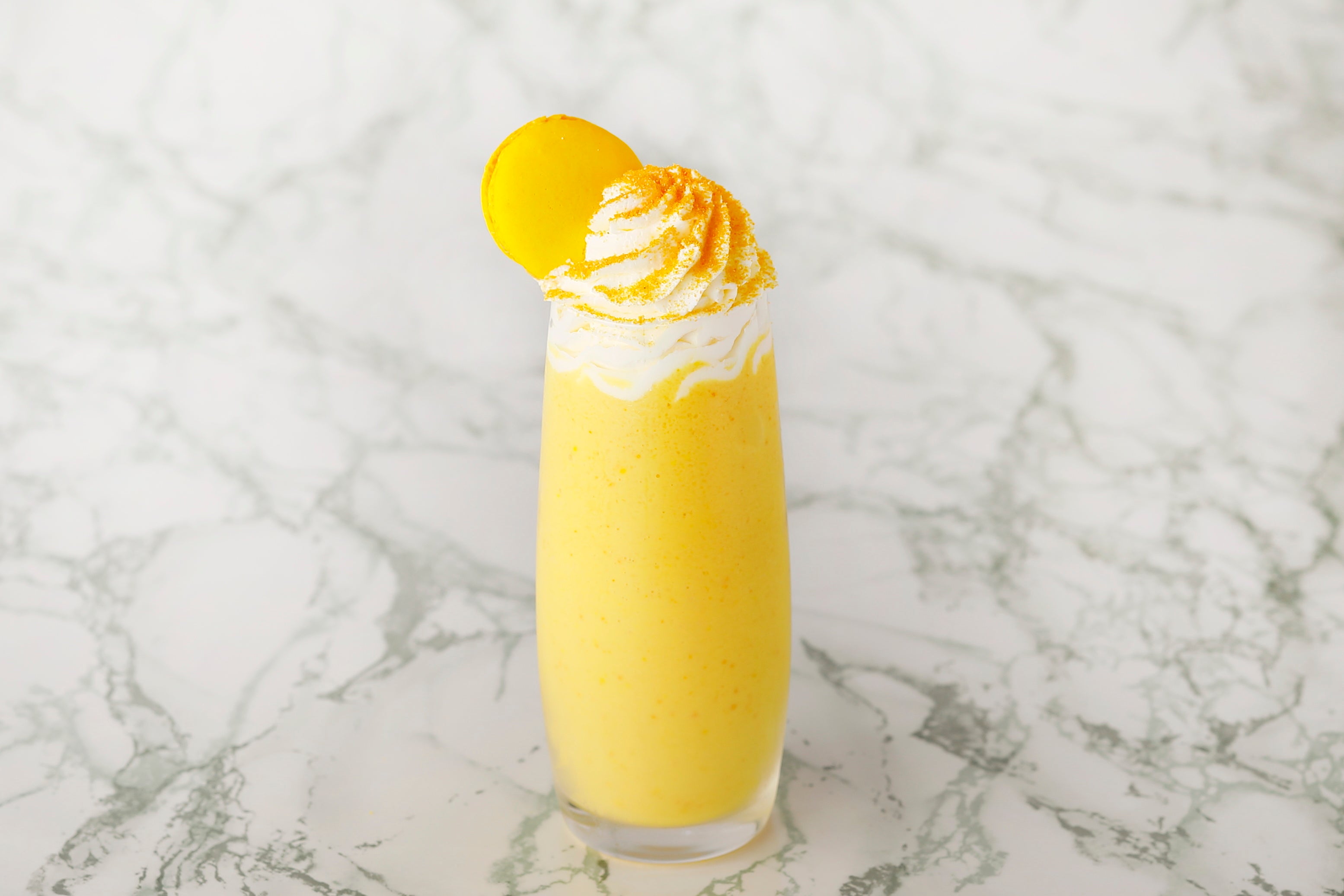 ホテルニューオータニに世界第1号店を持ち、常に創造性あふれる菓子作りに挑戦し続ける「ピエール・エルメ・パリ」からは、“飲むマカロン”とも称されるフラッペシリーズ『フラッペマカロン サティーヌ』が新登場。なめらかなミルクに軽やかなシャンティクリーム、そこに心地よい歯ごたえのマカロンコックが爽快な「サティーヌ」のフレーバーを引き立て、口いっぱいに広がるオレンジとパッションフルーツの味わいが夏を感じさせる一品。