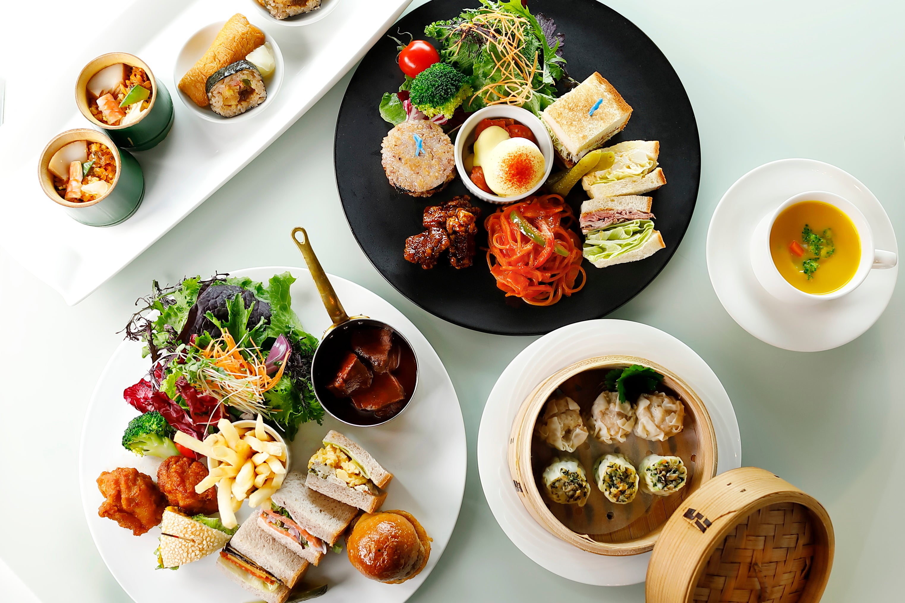 さらに、ホテルオリジナルブレンドで栄養価に富んだ雑穀米「Jシリアル」を使用した『すき焼きJシリアルサンド』『焼き鳥Jシリアルサンド』などの変わり種サンドウィッチや、10種類の旬のサラダと4種類のドレッシング
