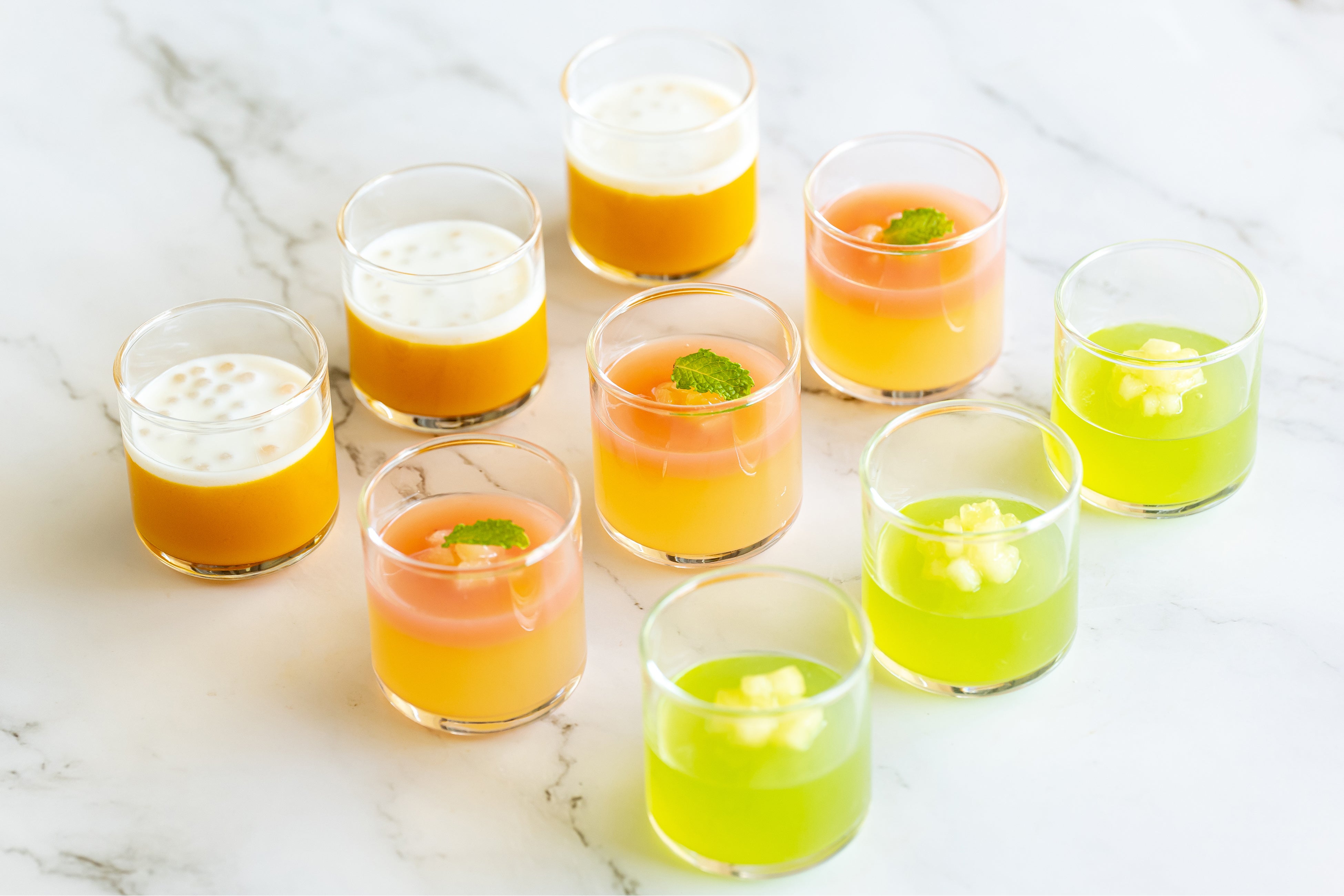 また、『マンゴーゼリー』『ピーチゼリー』をはじめ、発酵和菓子 元祖くず餅「船橋屋」の「くず餅乳酸菌®」を使用した『新edoくず餅ゼリー』や『豆乳バスクチーズケーキ』など、定番スイーツから夏季限定スイーツまで幅広くご堪能いただけます。