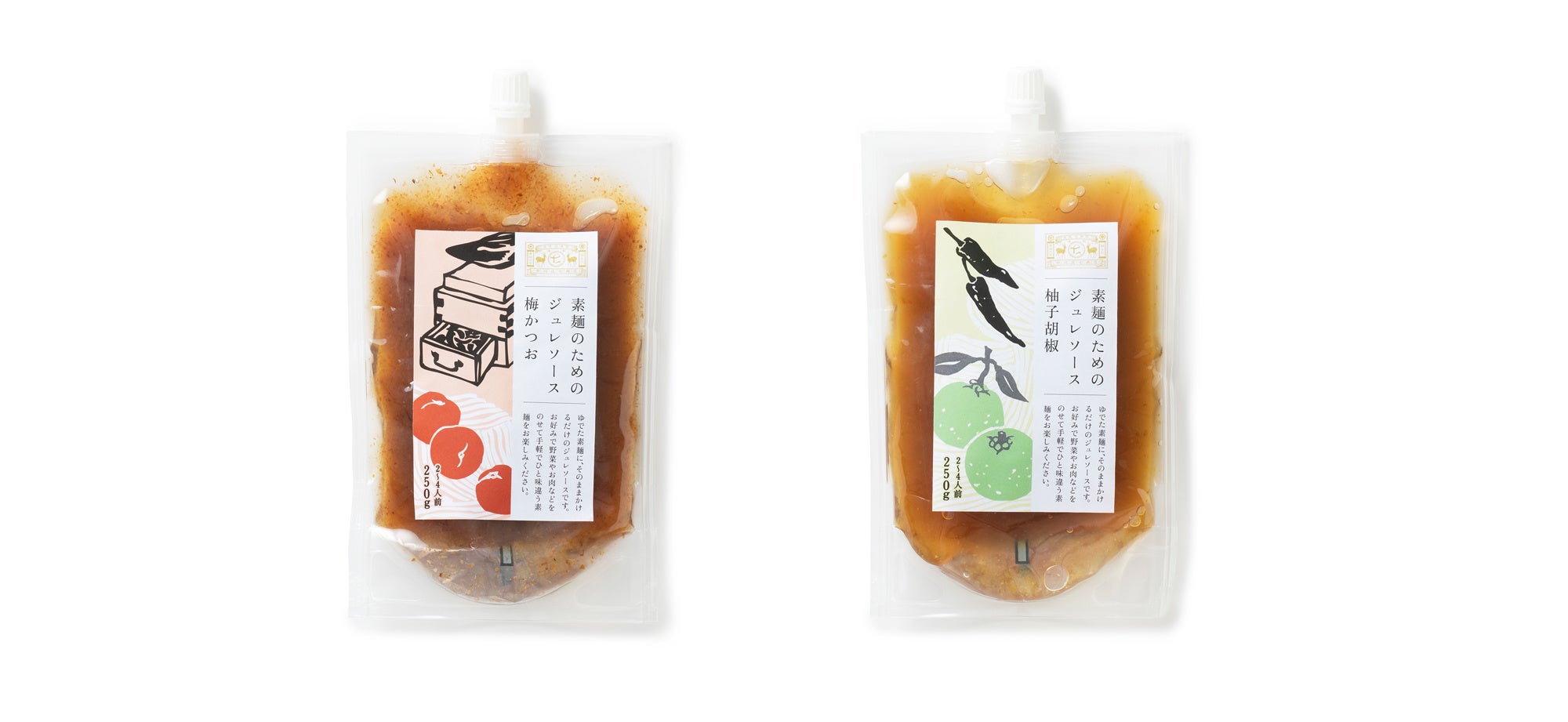 素麺のためのジュレソース 柚子胡椒、梅かつお/各702円