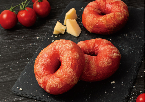 トマトとピッツアソース、風味豊かに熟成したパルメザンチーズを練り込んだイタリアンベーグルです。ゴーダ―とモッツレラをブレンドしたナチュラルチーズをトッピングしています。
