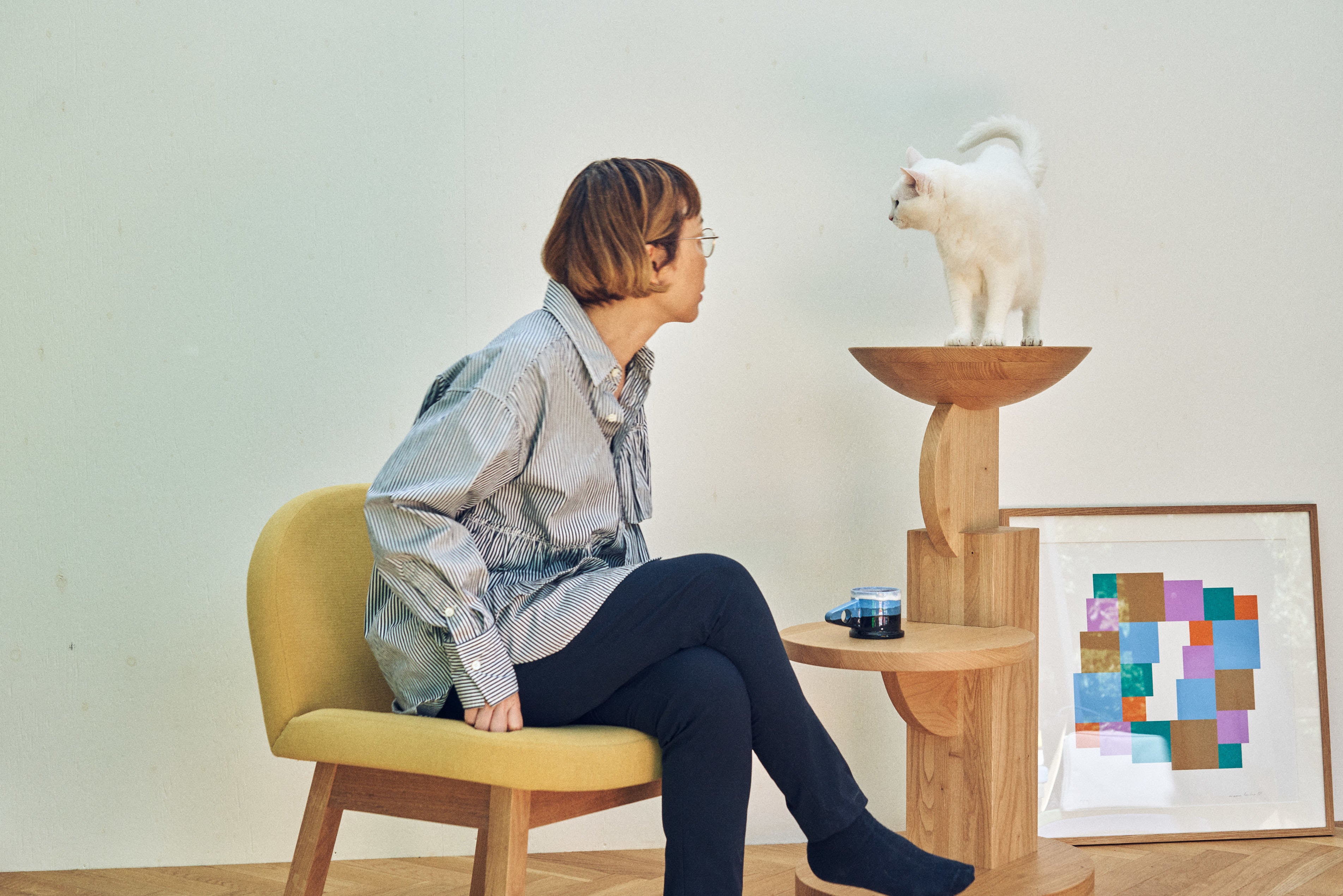 設計事務所imaの2人の猫への愛情とインテリアへの想いを、飛驒産業で長年培われた木工技術によって実現した、猫の美しい容姿を愛でるための台「medel〈メデル〉」。愛猫家でもあるデザイナーの視点から生み出された幾何学的で洗練されたフォルムは、インテリアの一部として強い存在感をはなちます。