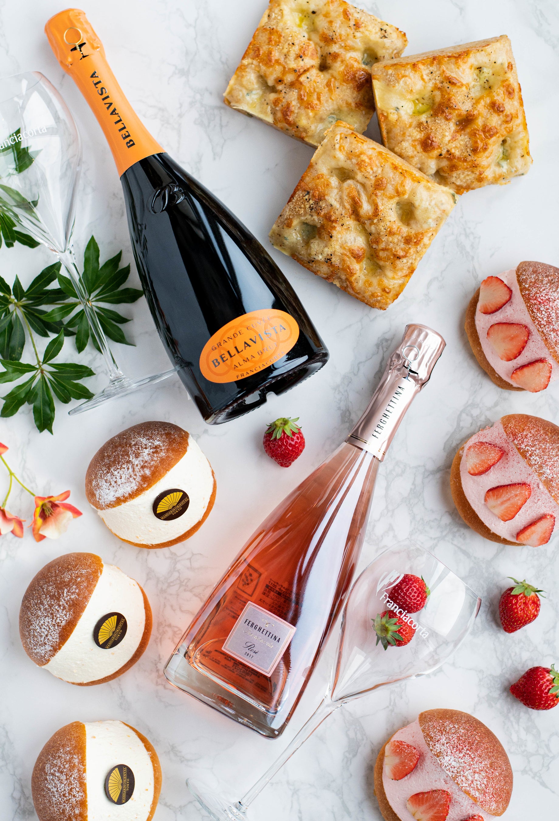 広東料理「センス」では、土日祝日限定でテイスティングセットやフリーフロー。イタリアンダイニング「ケシキ」では、お料理と合わせてのペアリングメニュー、フランチャコルタ3グラス ペアリングセットなど、「ピッツアバーon 38th 」 でもバイザグラスやボトルも楽しめます。また1階の「ザ マンダリン オリエンタル グルメショップ」では、ブリュットとロゼのバイザグラスをご用意し、マリトッツォやフォカッチャと組み合わせた特別セットメニューを特別価格でご用意。