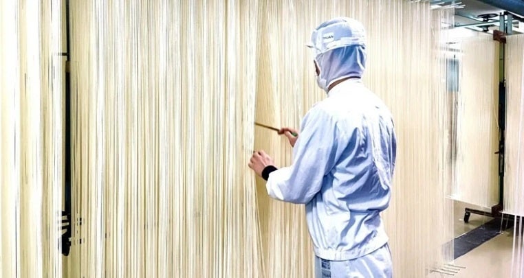 そうめん発祥の地、奈良県桜井市で伝統的な手延べ式でそうめん作りに取り組む、嘉永三年創業の老舗そうめん工場「池利」。小麦粉、塩、水、油のみを使い、製麺技能士検定(手延べそうめん類製造作業)に合格し現場で腕を磨いた職人が、その日の気温や湿度などの天候条件を読み、食塩水の濃度を調整しながら繊細なそうめん作りを行っています。天然の素材で色や味をプラスする高度な技術を用いた色麺製造、様々なコラボレーションなども精力的に行っている。歴史ある三輪そうめんを現代に受け継ぎ、その時代に合わせて行うさまざまなチャレンジは、「かたくなに守り続けるだけが伝統でなく、常に新しさを求めることも伝統のひとつです」と伝統を受け継ぎながら、明日の麺文化をみつめる池田利一社長のもと、三輪そうめんを、日本の麺文化を発信しています。