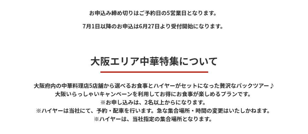 大阪エリア中華特集日帰りパック