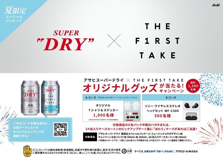 本商品の6缶パックやカートンを対象に、抽選で総計1,500名様にオリジナルTシャツ&ステッカーなどが当たる「アサヒスーパードライ×THE FIRST TAKE オリジナルグッズが当たる!キャンペーン」も実施します。
