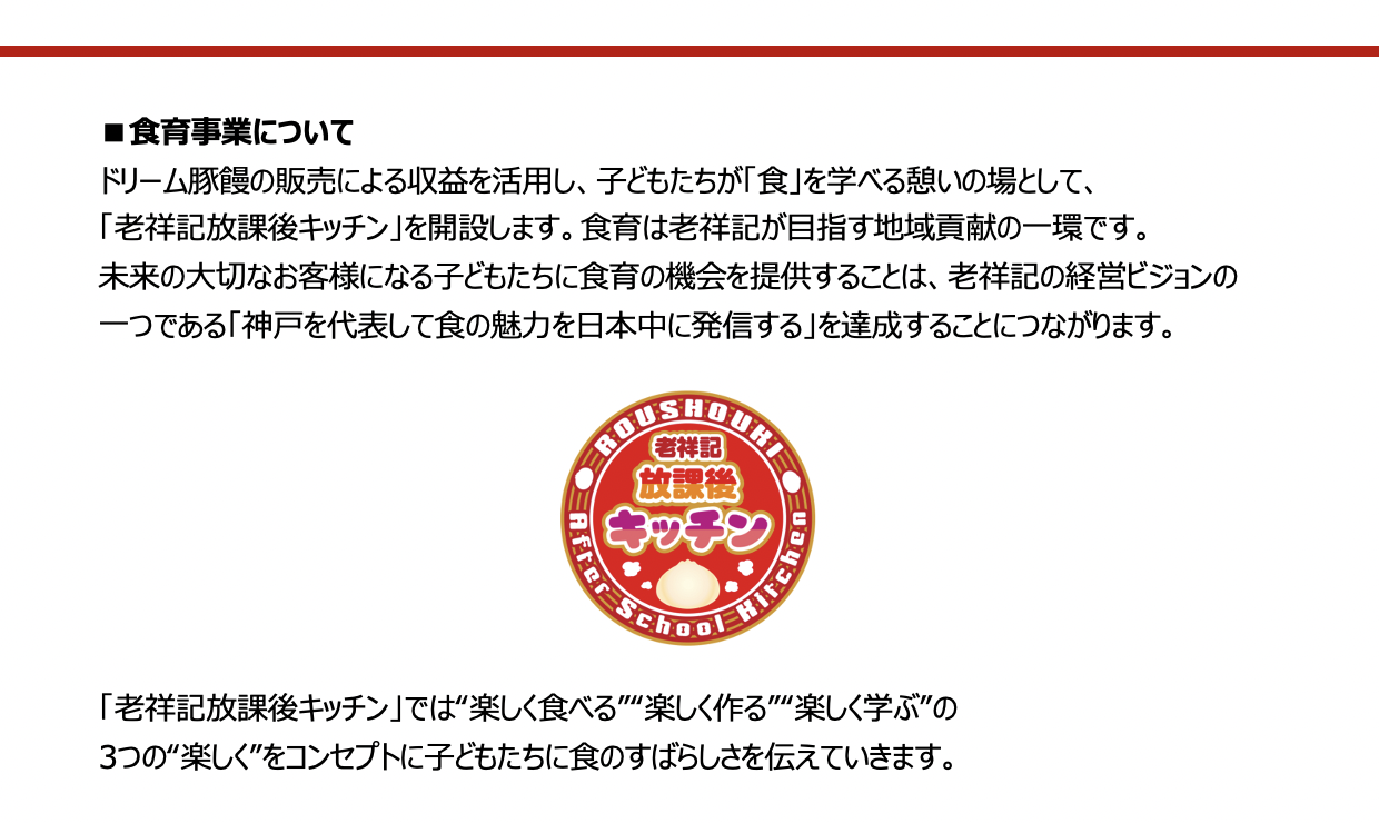 (株)老祥記(神戸市中央区元町通2−1−14 社長 曹 英生 078-331-7714)が食育事業を本格的に手掛けます。