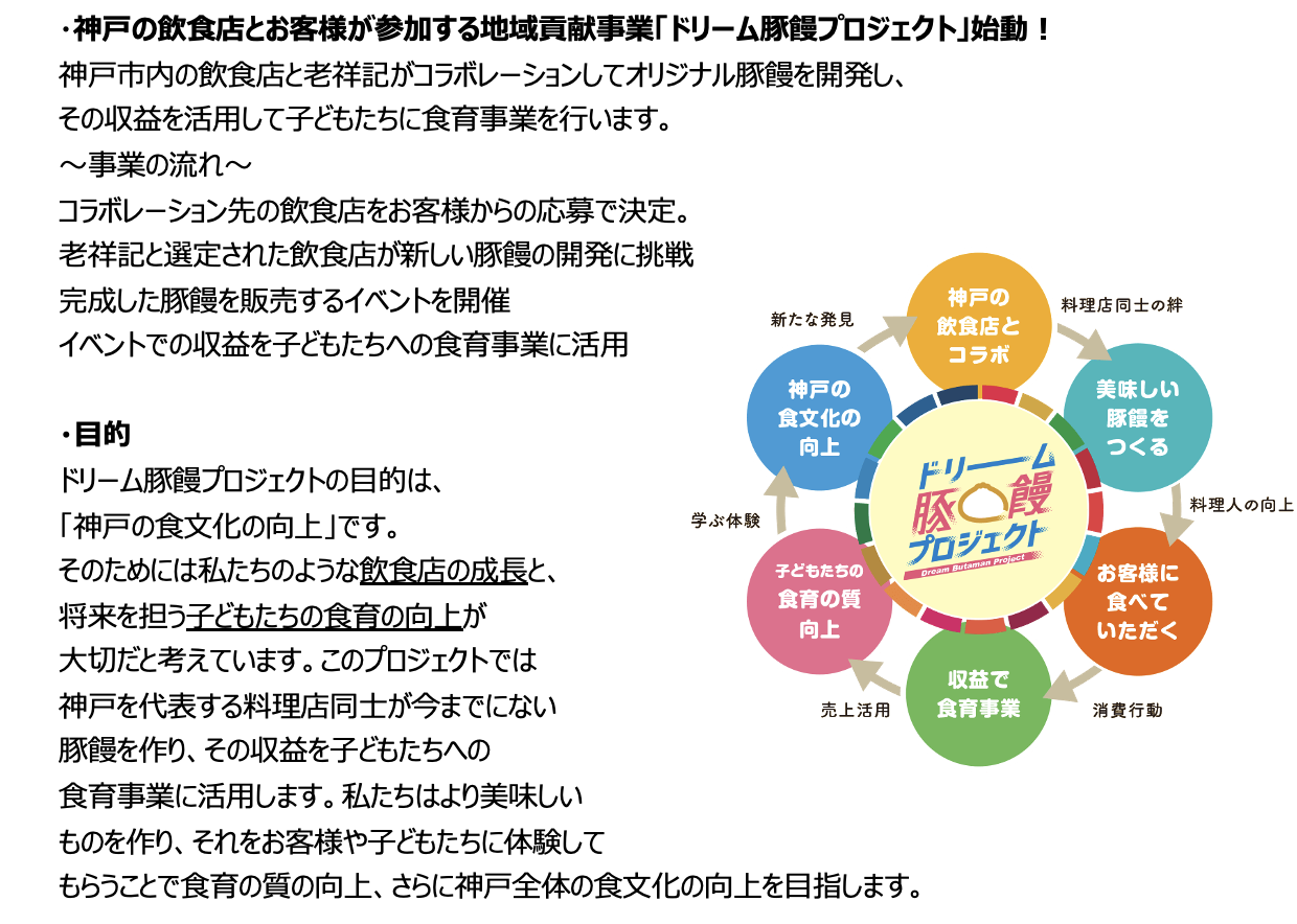 昨年10月に神戸市の飲食店とお客様が参加する地域貢献事業「ドリーム豚饅プロジェクト」を始動!