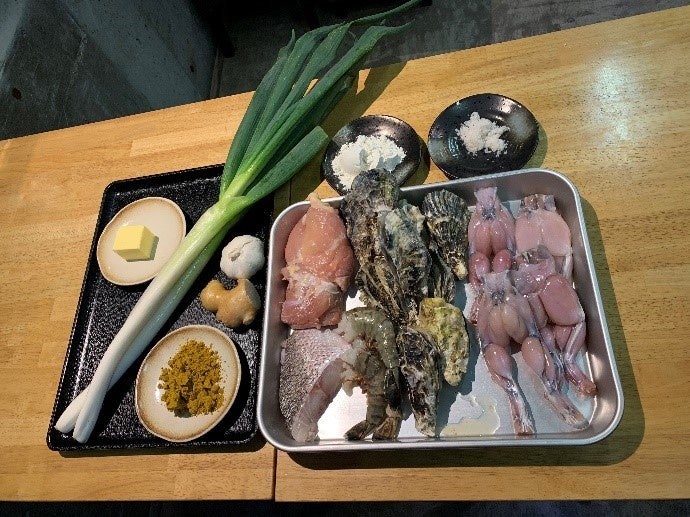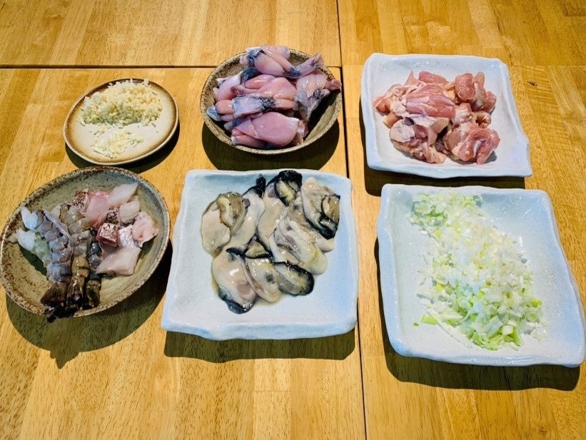・具材は鶏肉、海老、鯛、牡蠣、カエル。