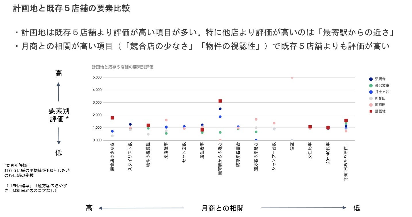 ・既存5店舗と比較して、新規出店候補地のポテンシャルを計測