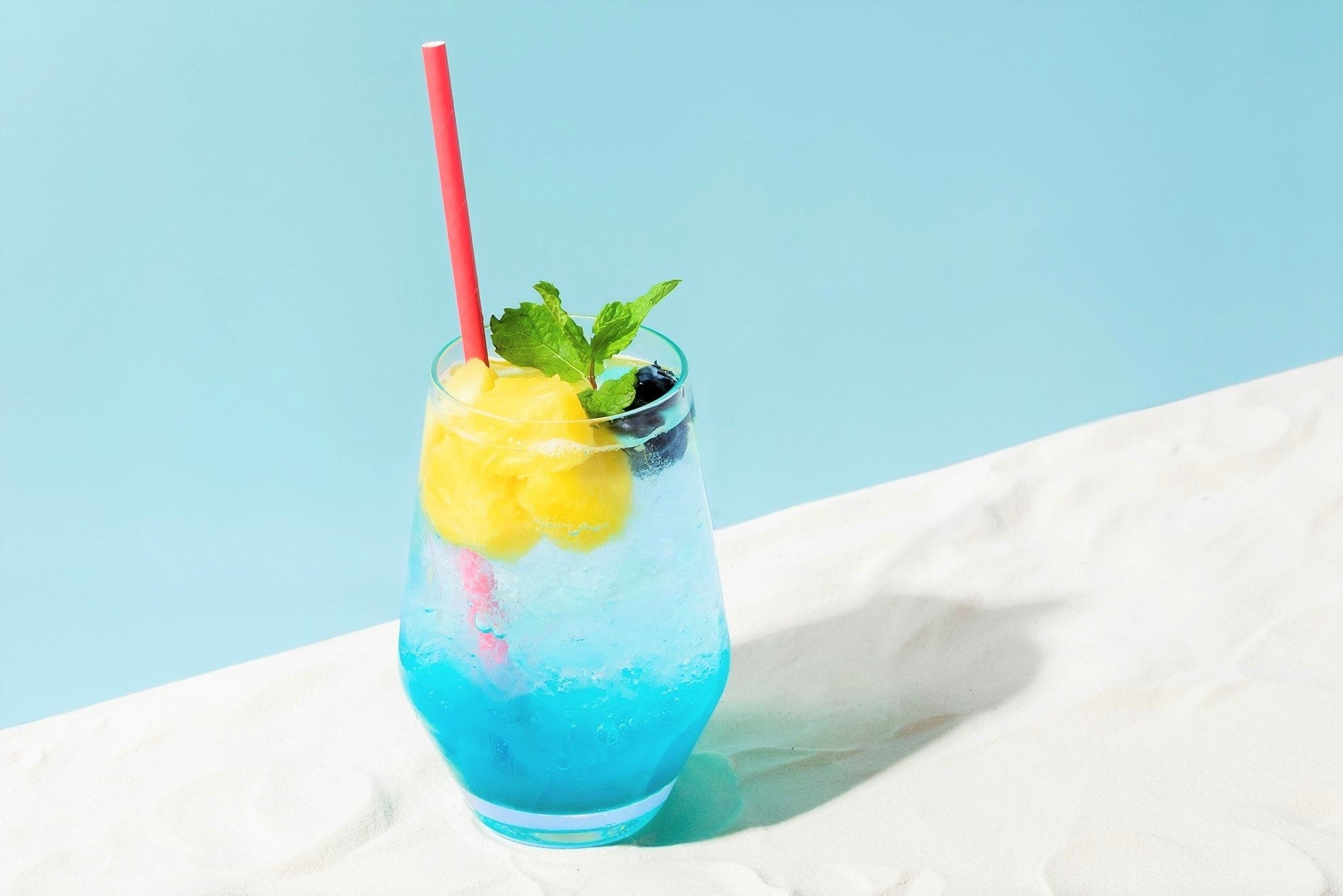濃厚なパイナップルシロップと炭酸にごろっとパインを贅沢にのせた、海をイメージした夏らしいドリンクです。