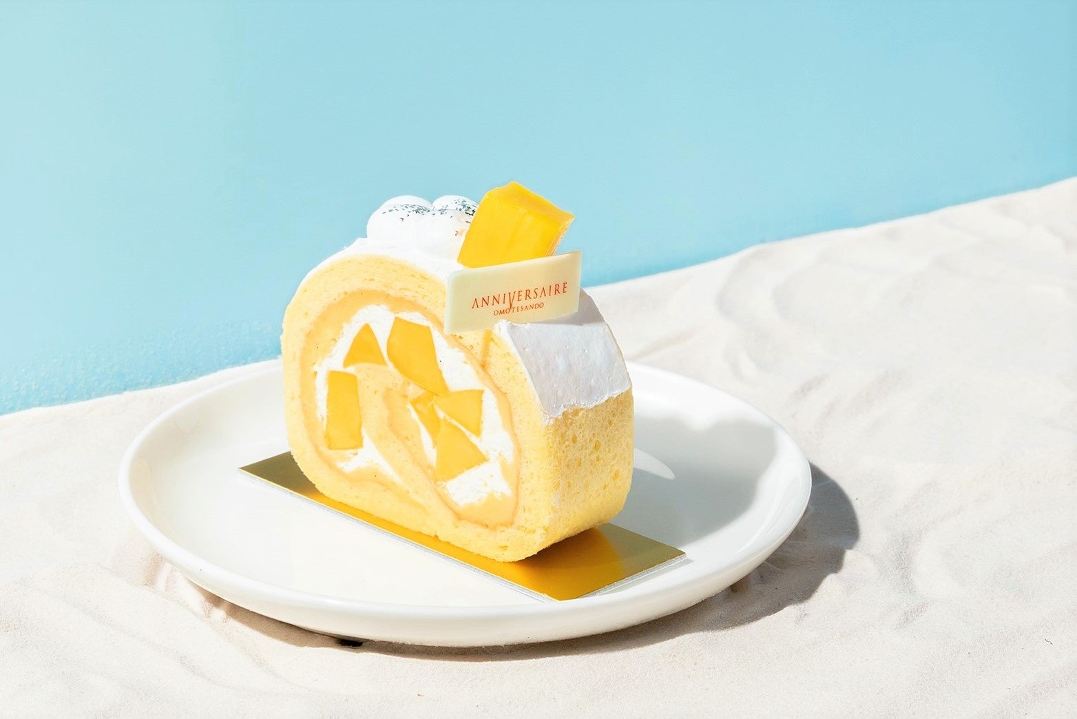 もちもちとした生地にたっぷりのマンゴーとバニラカスタードクリーム、生クリームを巻いたロールケーキです。