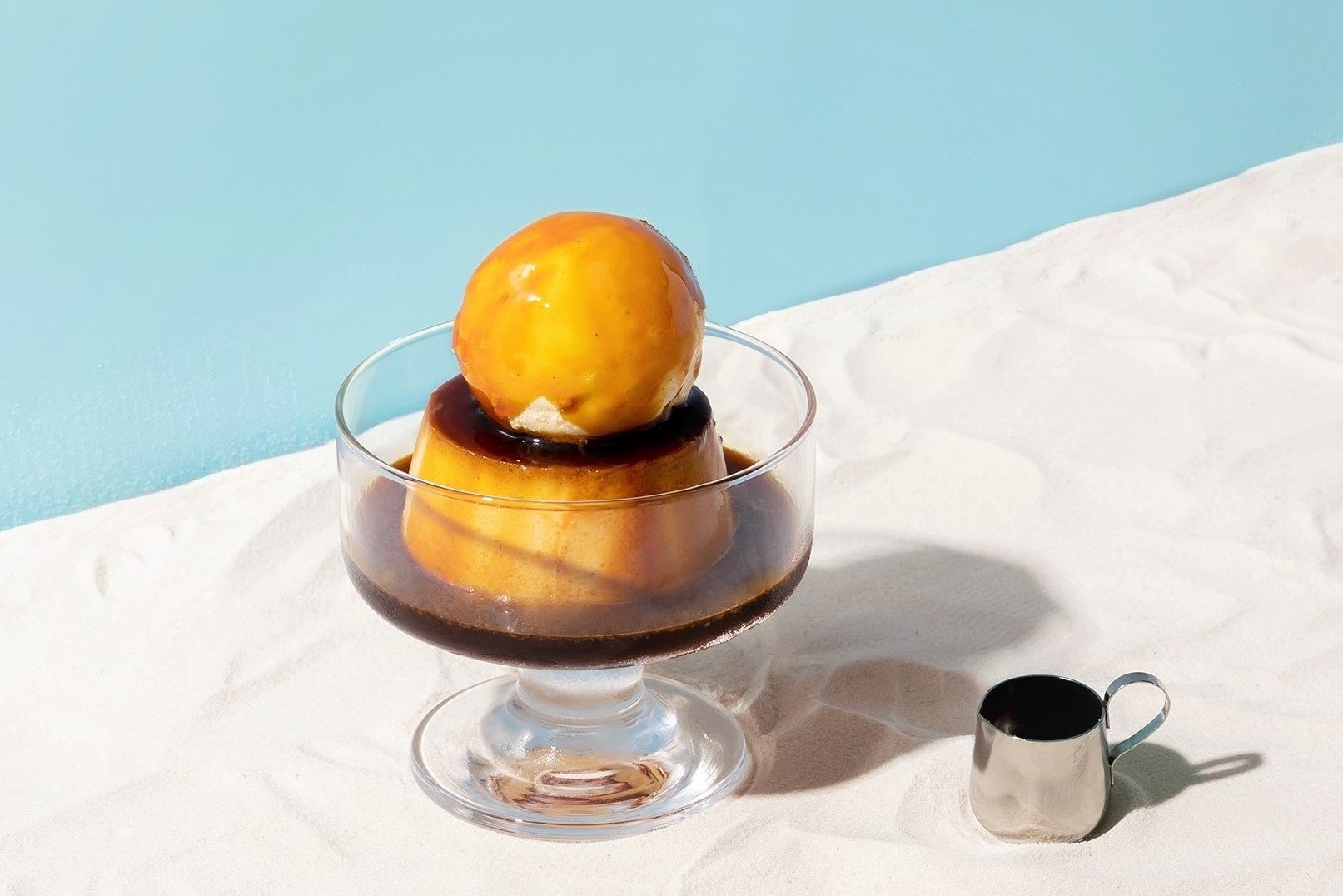 バニラビーンズをたっぷりと使用したプリンです。バニラアイスとほろ苦いキャラメルを一緒にお楽しみください。