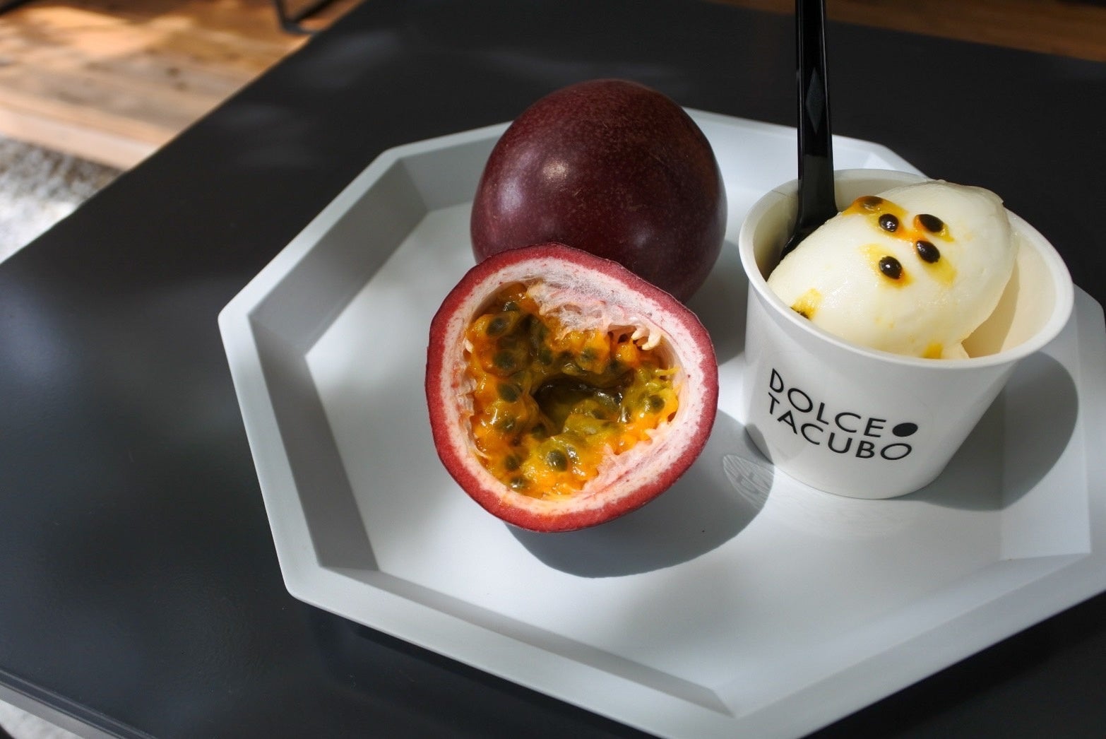 『純白のミルクジェラート(パッションフルーツ)』には国産のフレッシュなパッションフルーツを使用しております。甘酸っぱさと爽やかさはコクのあるジェラートと相性抜群で、夏にぴったりの商品です。