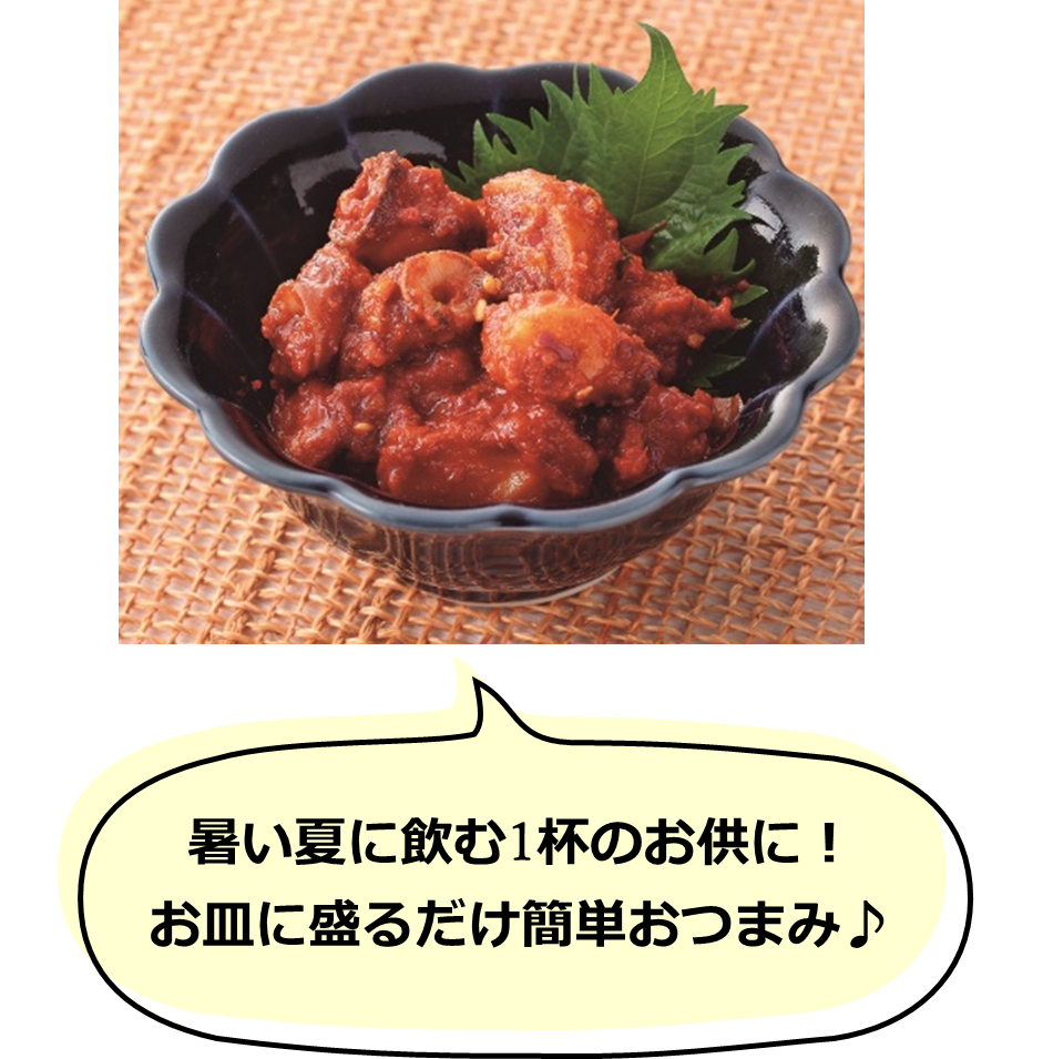 北海道産の水たこを秘伝のキムチだれにじっくり漬け込みました。ぶつ切りの水だこの歯ごたえと甘みが、熟成を重ねた秘伝のキムチだれと相性抜群です。