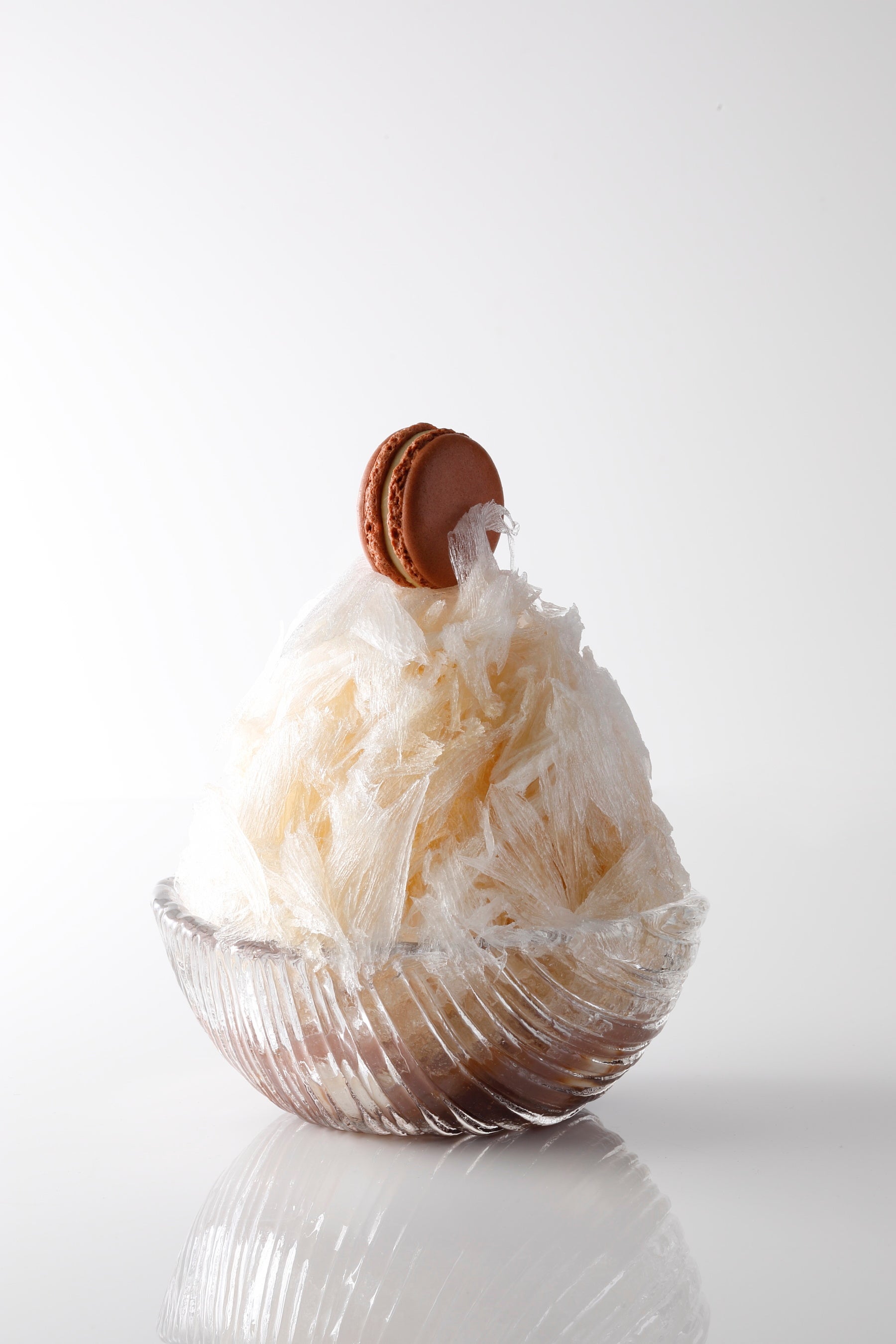 職人が丹精を込めて作り上げた天然氷は不純物を含まず、削るとまるで綿菓子のようなふわっふわのかき氷に。口あたりが非常に滑らかで、かき氷特有の頭がキーンとなる感覚も少なく、それぞれの味を存分にお愉しみいただくことができます。