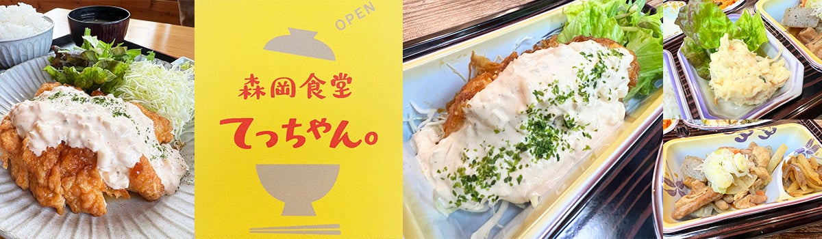 森岡食堂 てっちゃん。はランチ営業時は定食メニュー、夕方以降は居酒屋メニューを提供をしている、メディア出演も何度かされている地域で話題のお店です。比較的お手頃な価格の定食が多く、ボリューム満点でお財布にも優しいお店です。