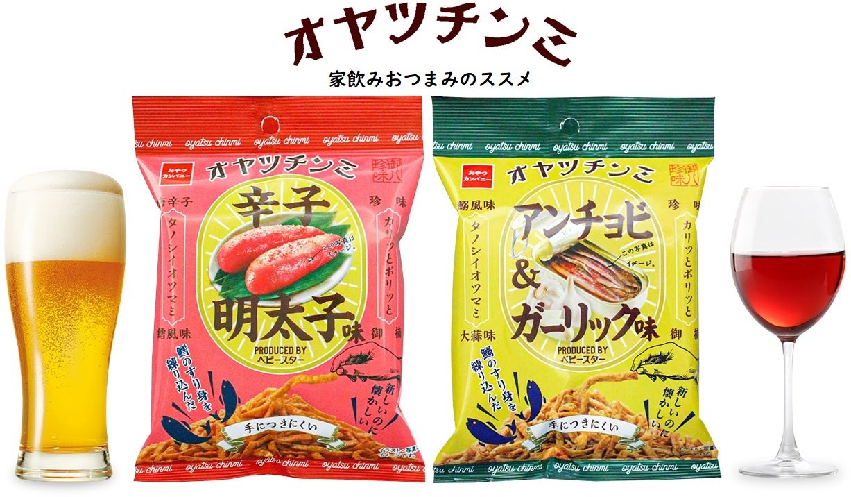 ベビースターラーメンの製法を応用した新感覚おつまみ「オヤツチンミ」は、揚げ物のおつまみが抱える“手が汚れる”という不満点に着目して誕生しました。
